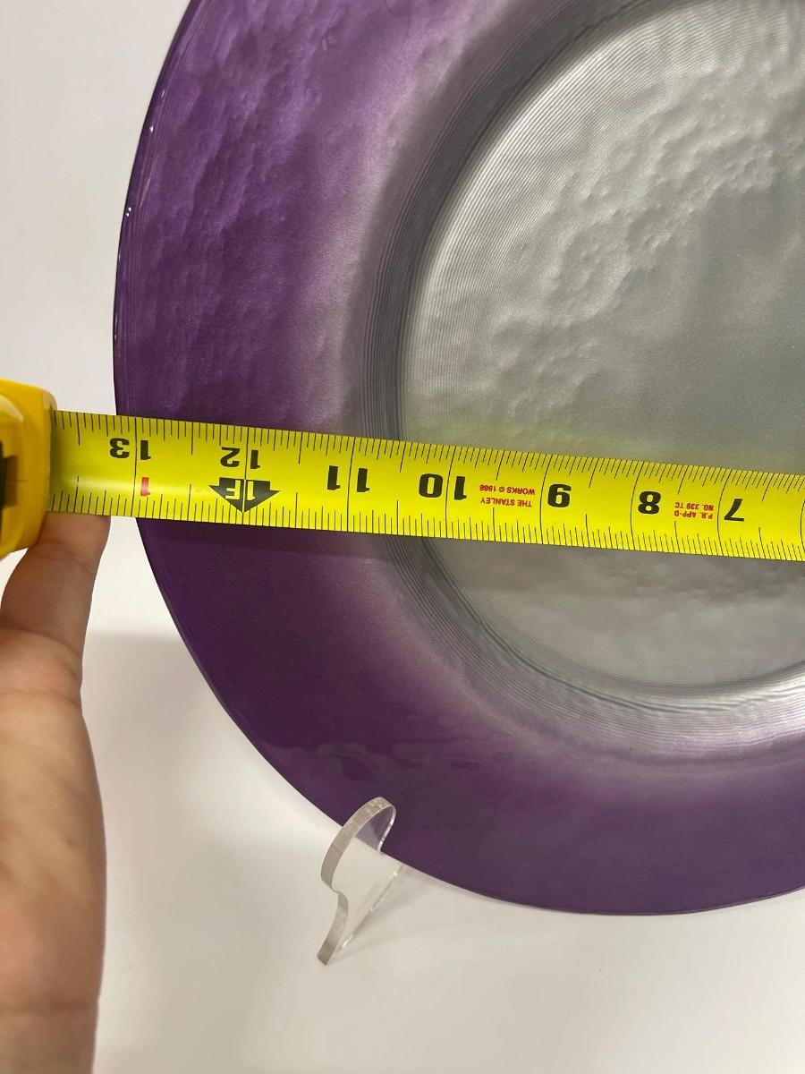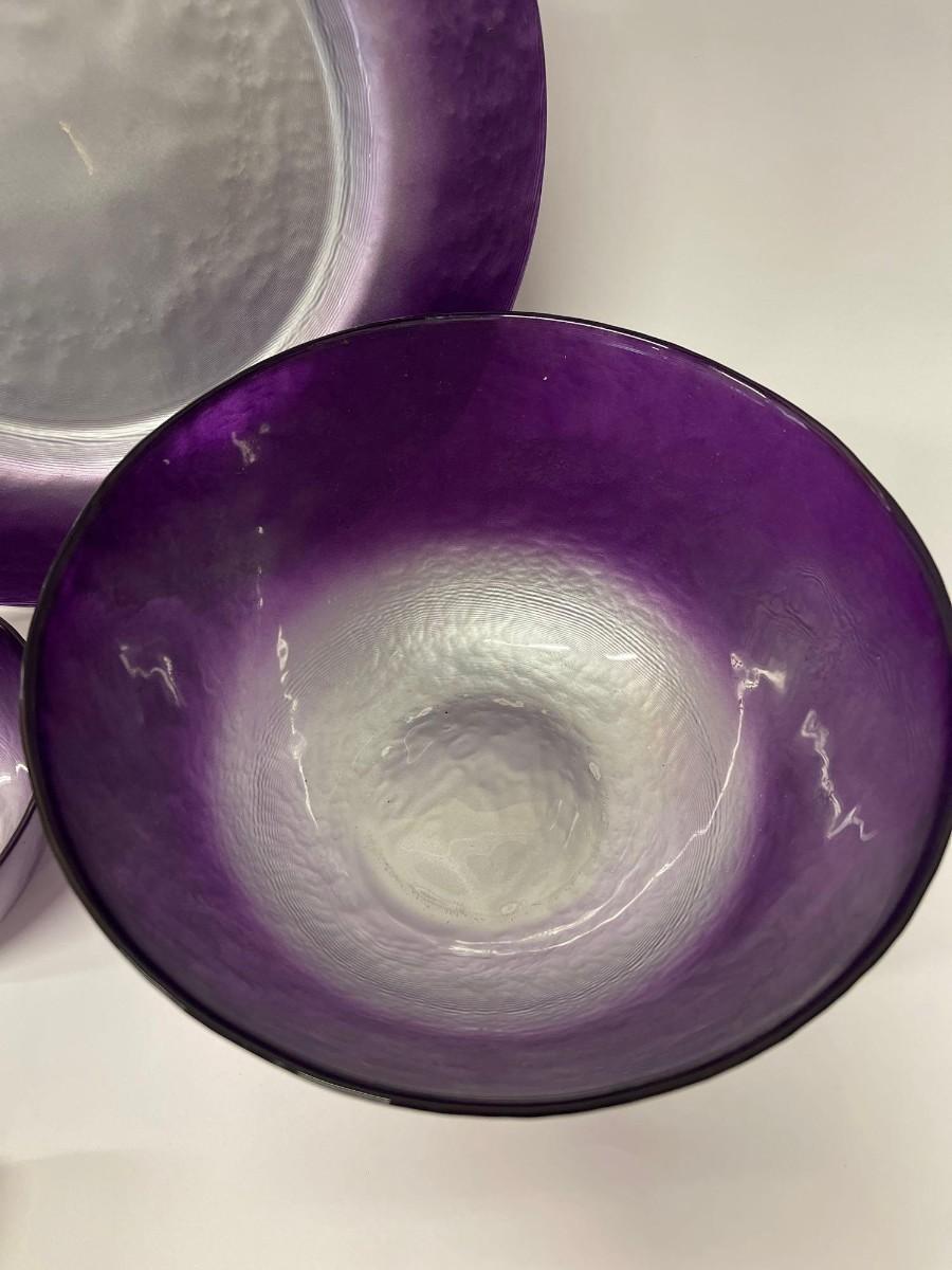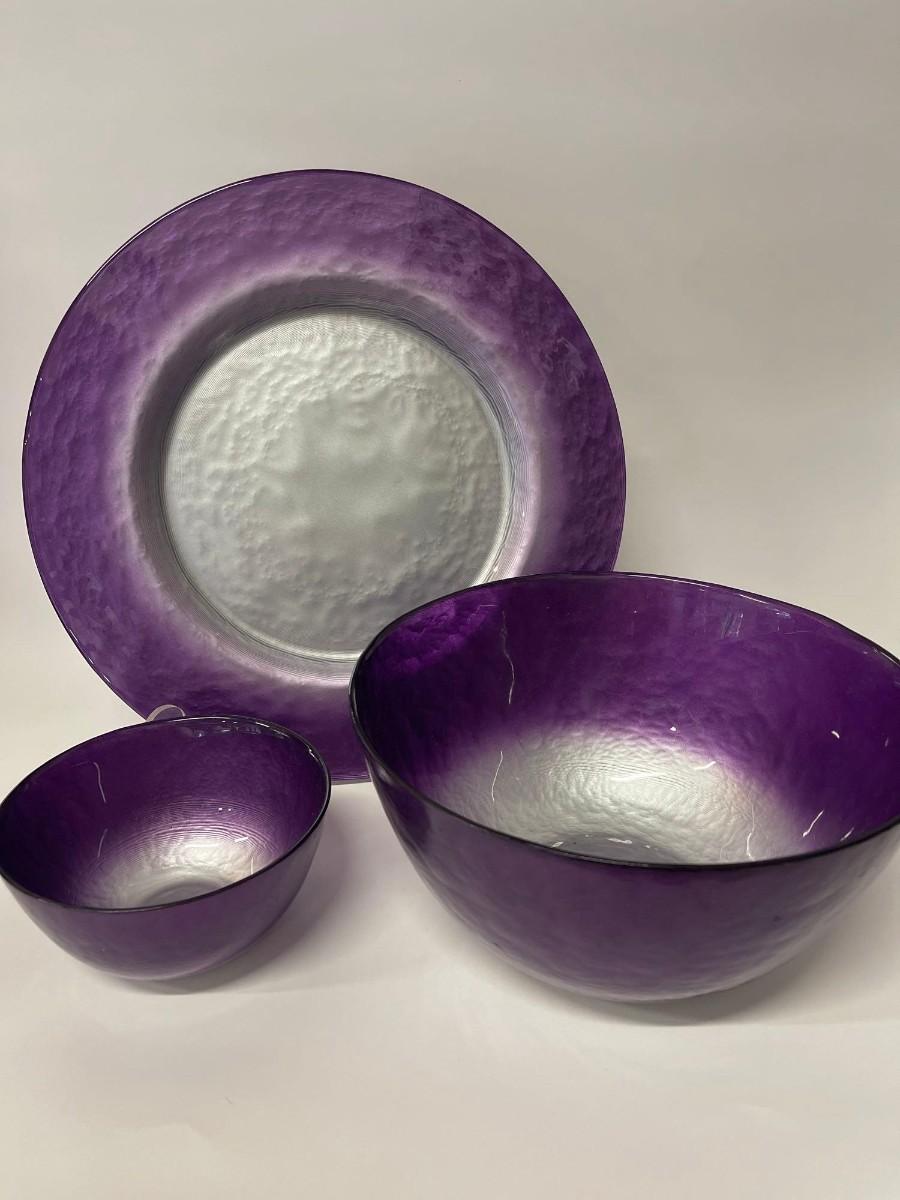 Lot of Reverse Painted Purple & Silver Glass Decorative Accents. Minor wear to the paint on the bottom where the pieces sit on furniture. Unmarked.
