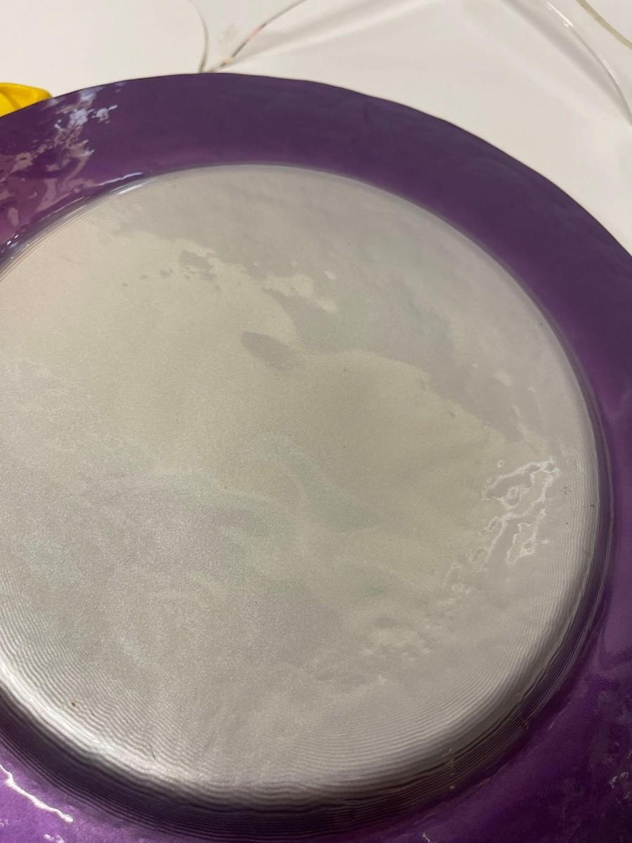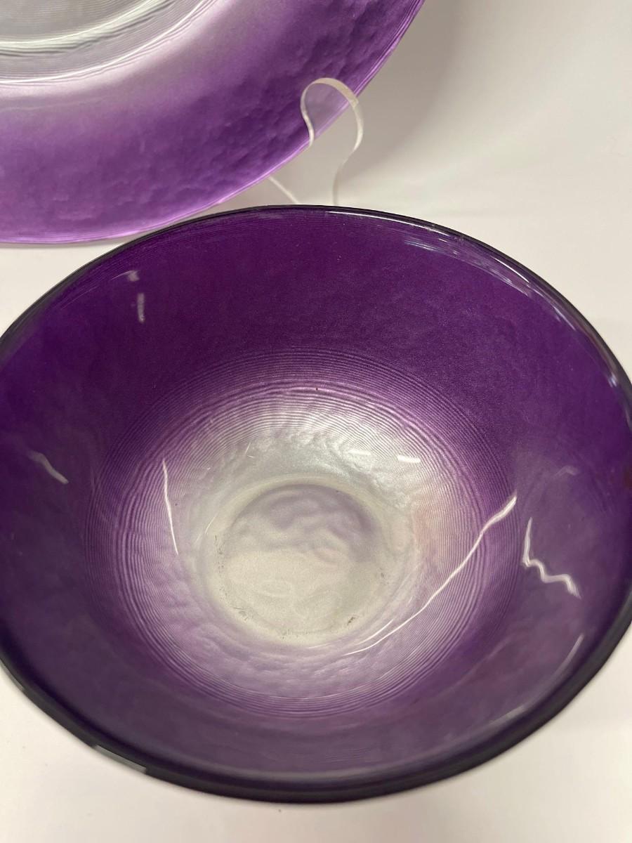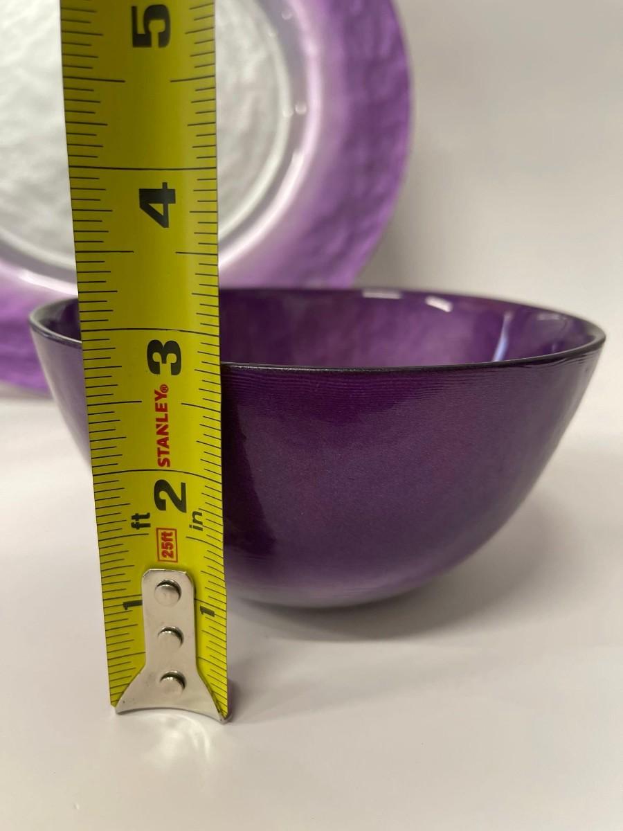 Lot of Reverse Painted Purple & Silver Glass Decorative Accents. Minor wear to the paint on the bottom where the pieces sit on furniture. Unmarked.