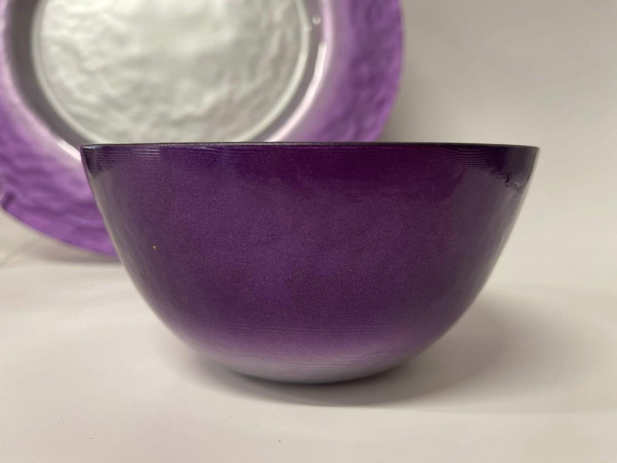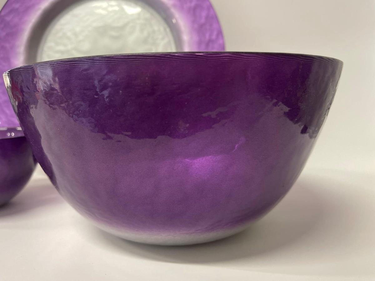 Lot of Reverse Painted Purple & Silver Glass Decorative Accents