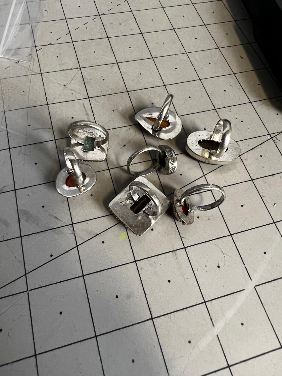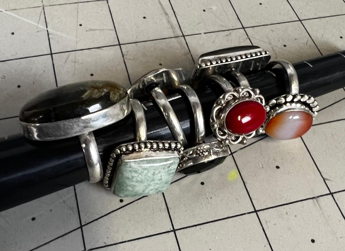 Lot of Rings - 7 Genuine Stones: Black, Tiger Eye, Moon Stone etc.