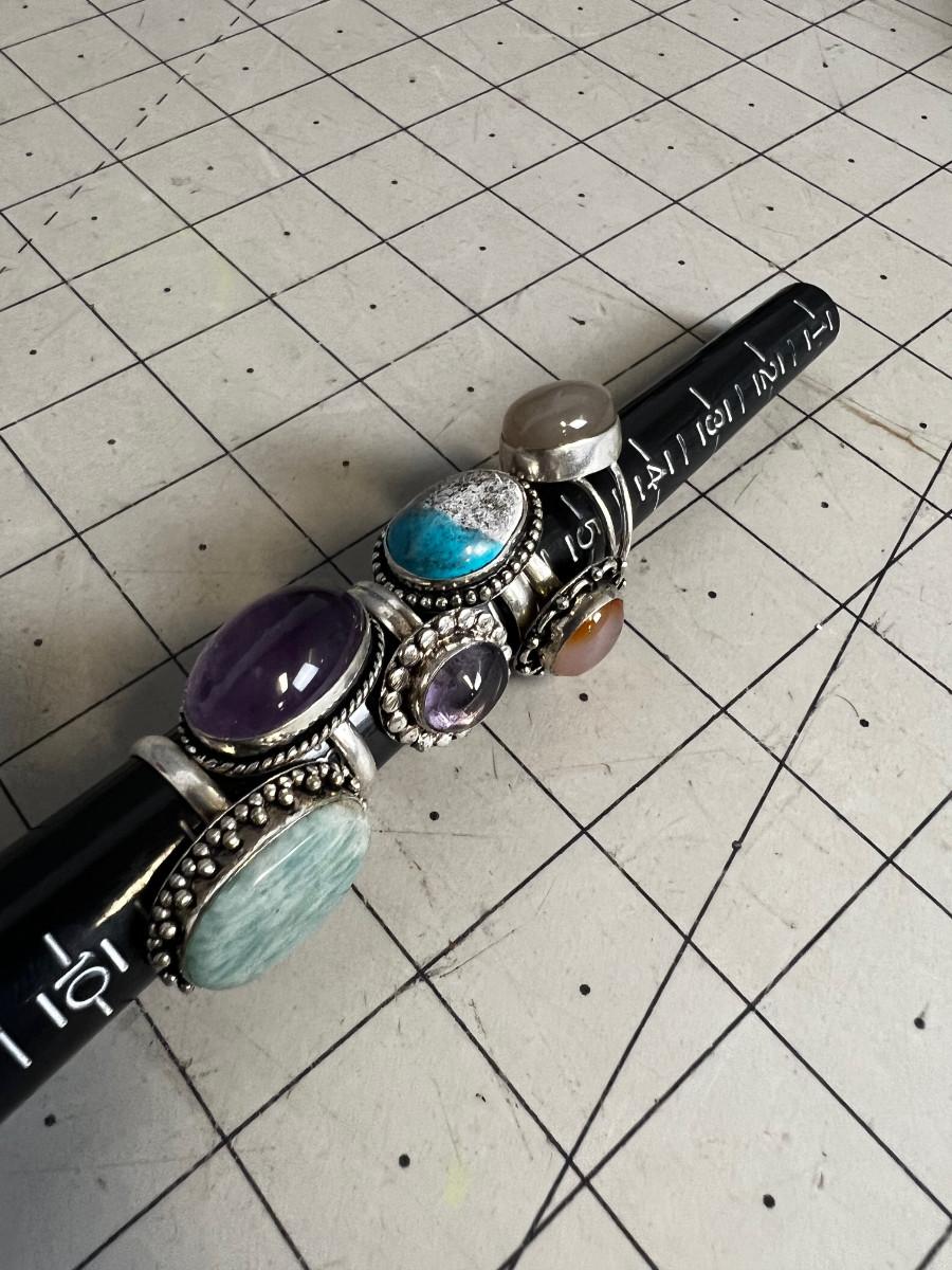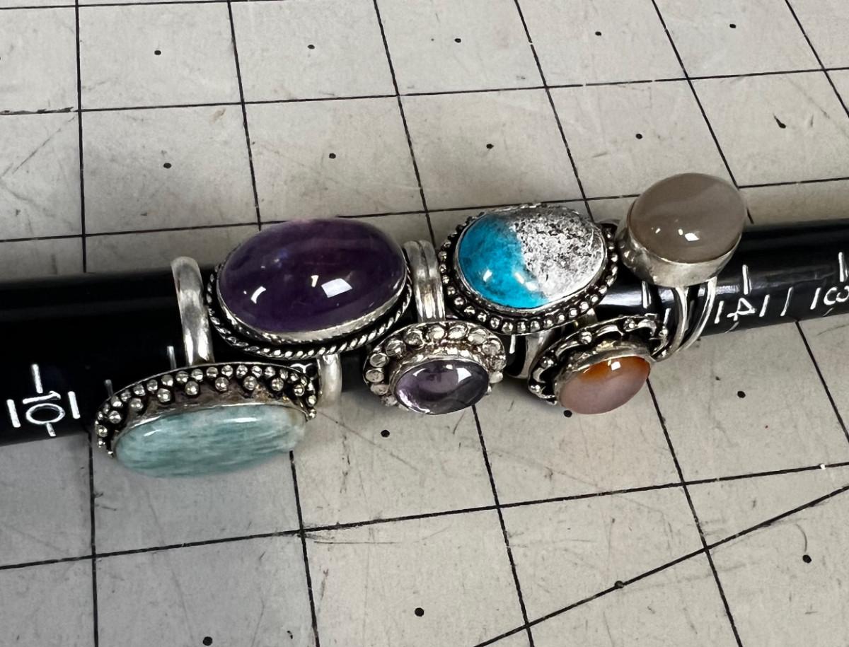 Lot of Rings - Genuine Stones Many Kinds. (6 ) Cabochon: Amethyst