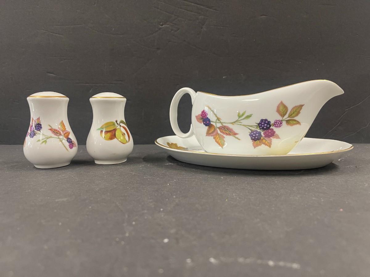 Lot of Royal Worcester Evesham Gravy Boat and Salt & Pepper Shakers