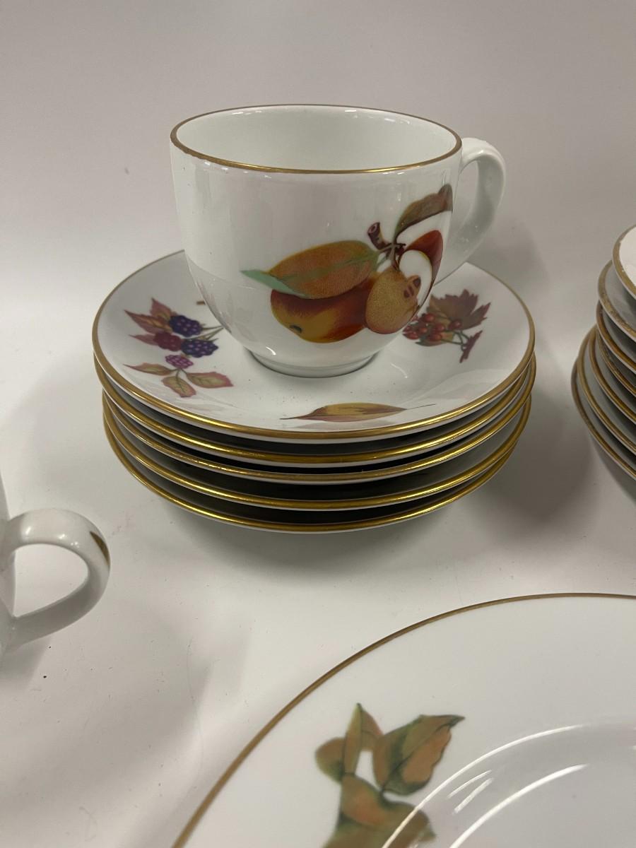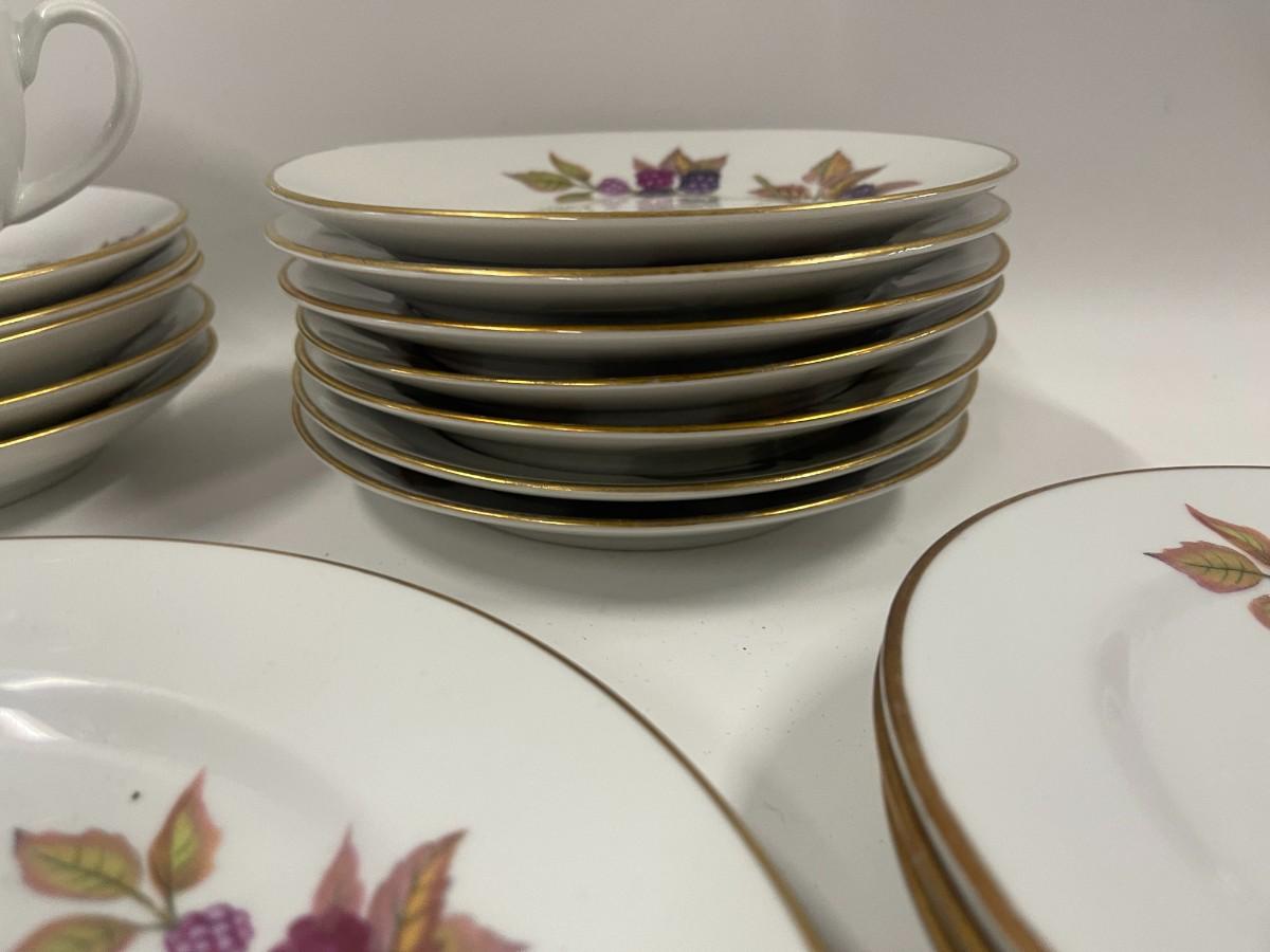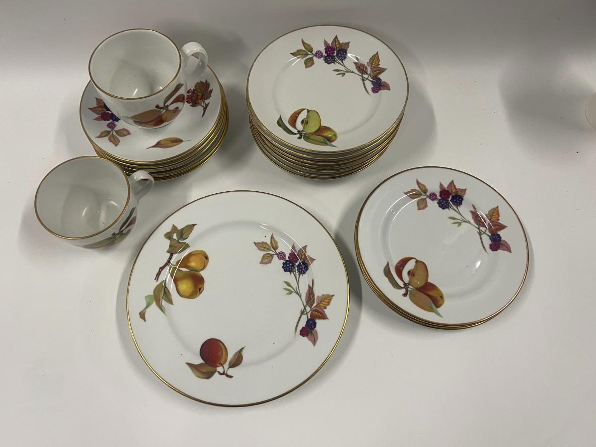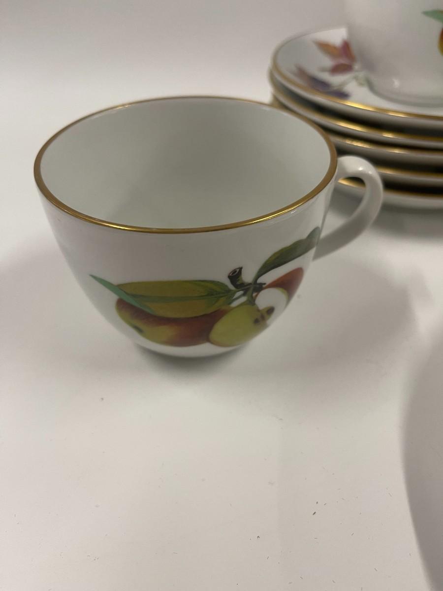 Lot of Royal Worcester Evesham China. Mixed lot. No chips but some of the older, smaller plates have wear to the gold rims.