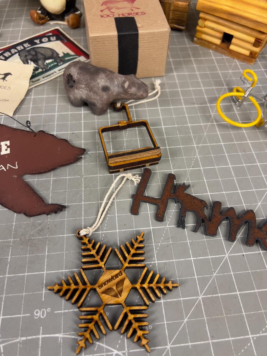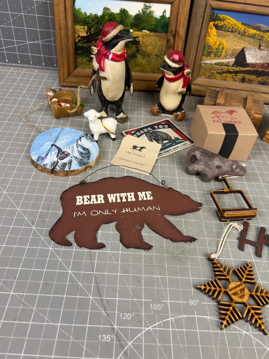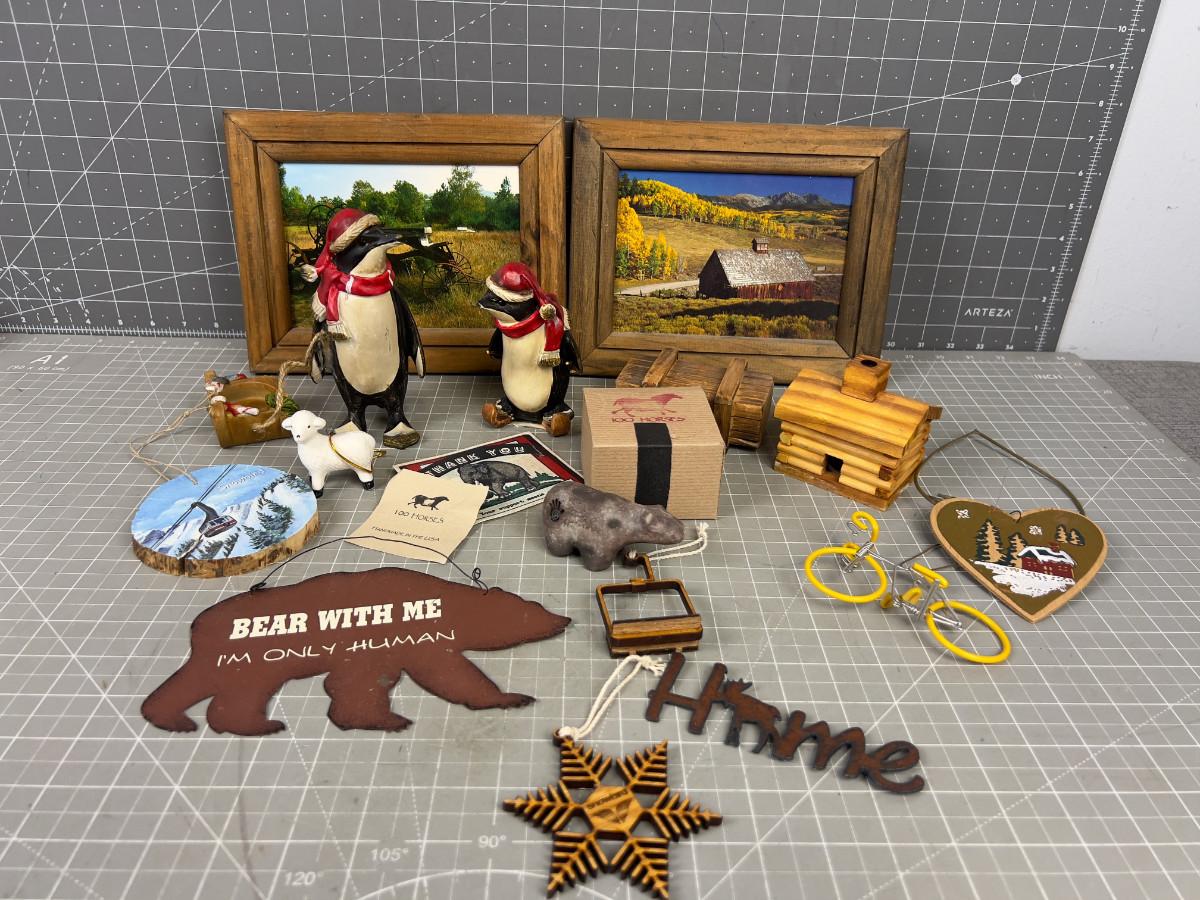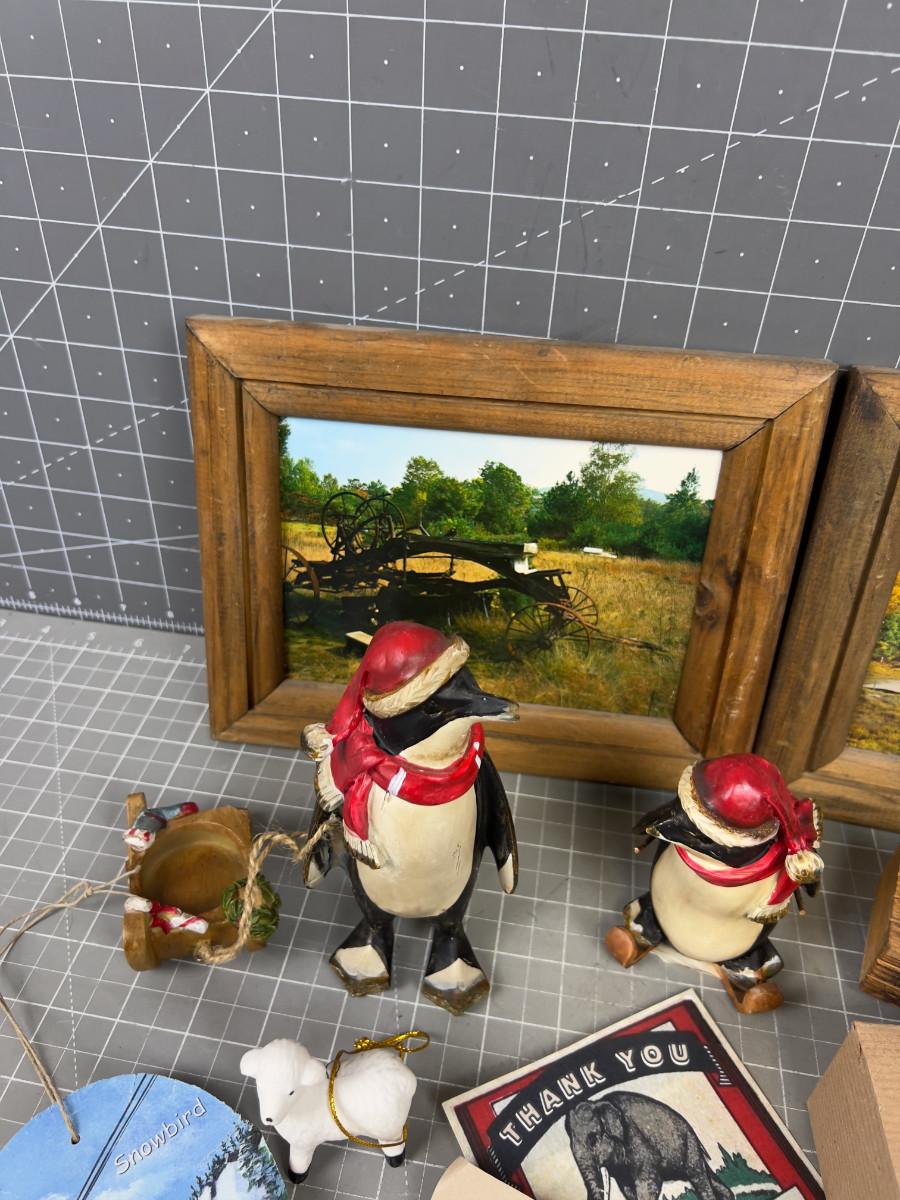 Lot of Rustic Décor' Including Snowbird Ornaments and penguins