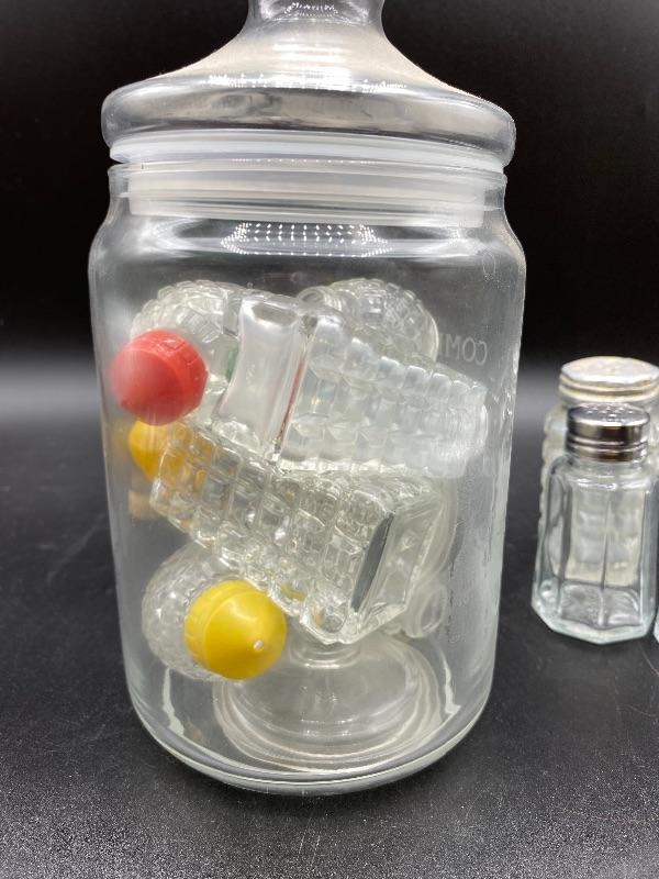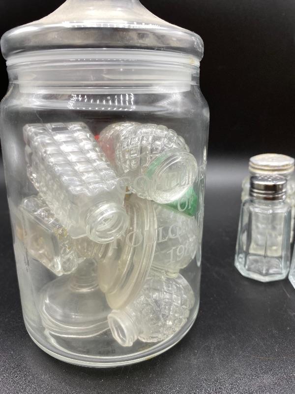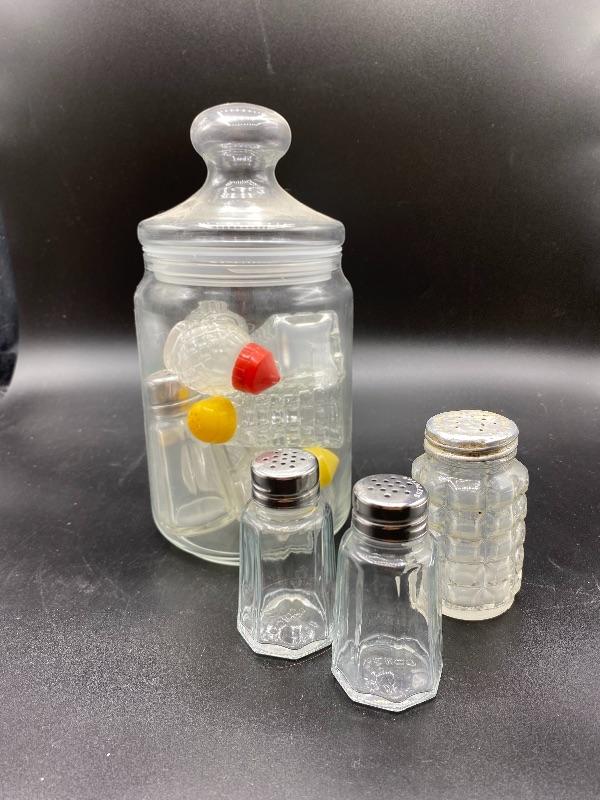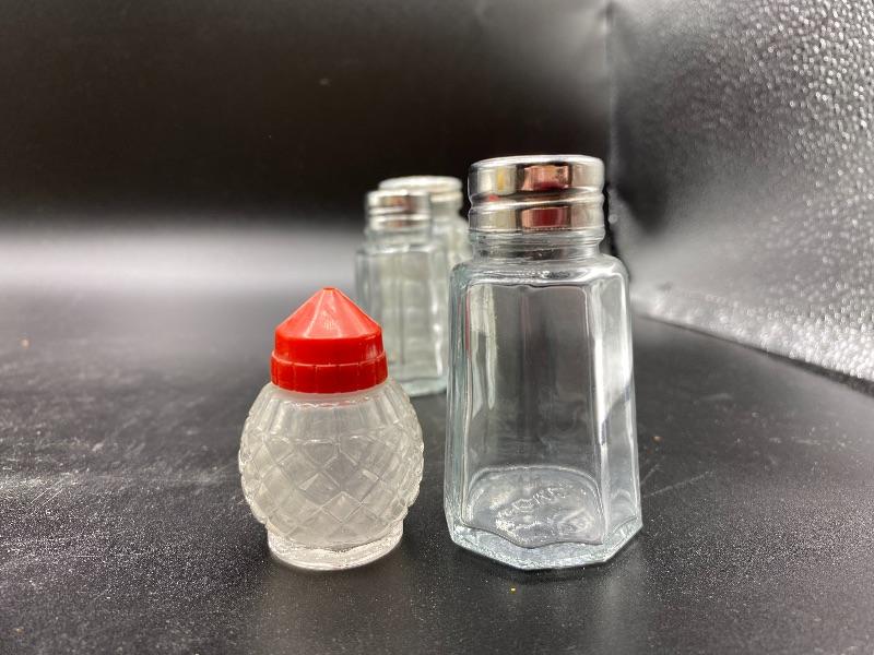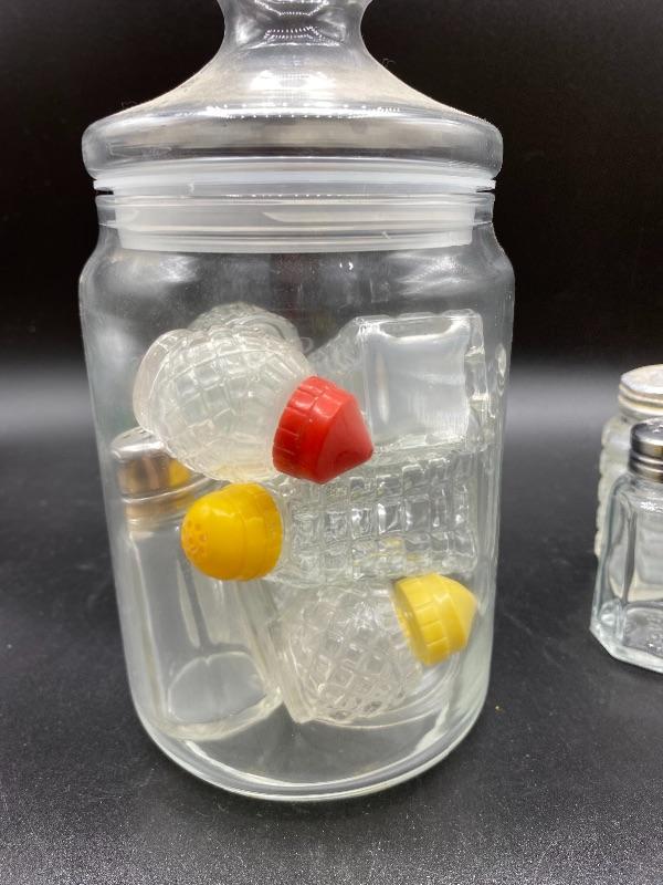 Mixed lot of glass salt & pepper shakers. Different sizes and styles.