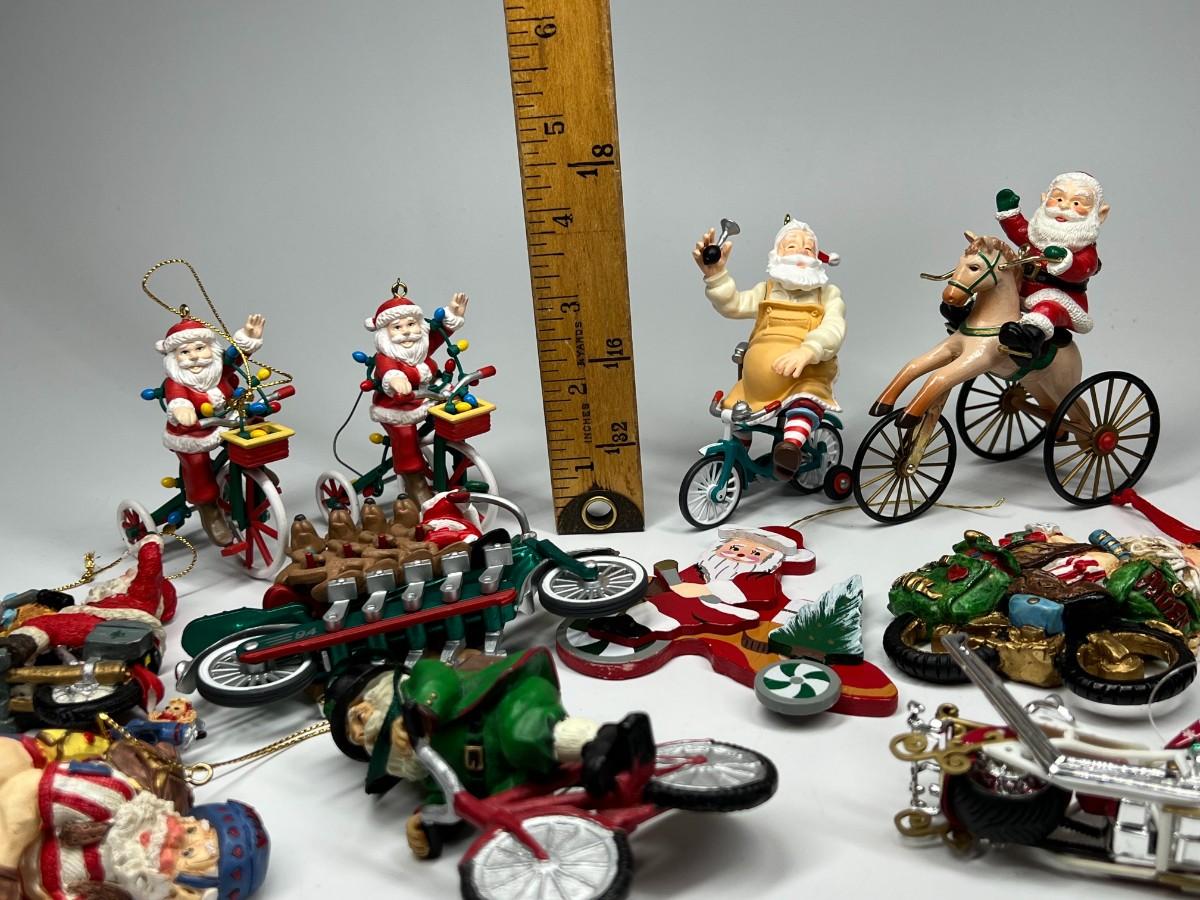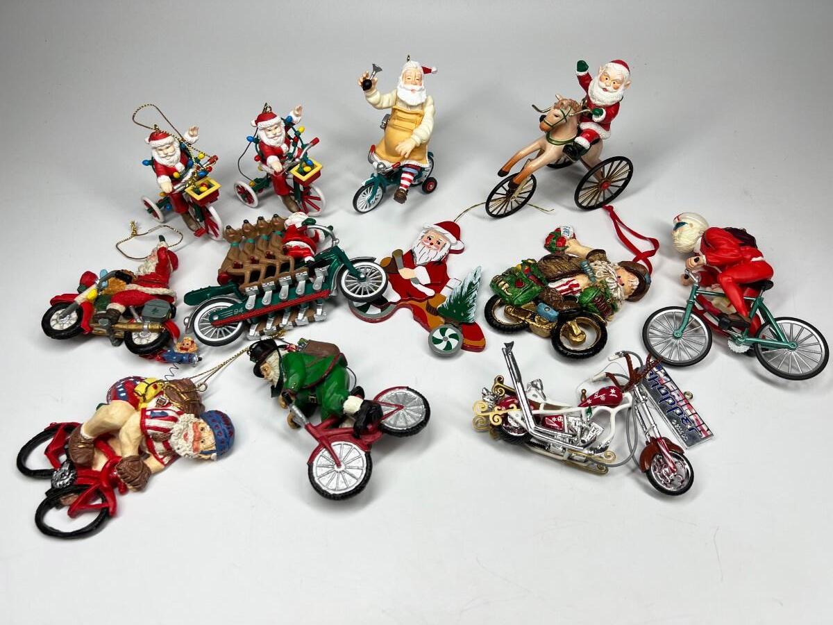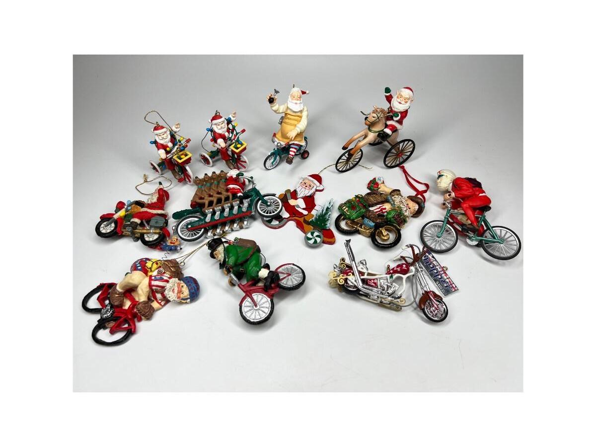 Lot of Santa Claus Father Christmas Bicycling Biking Figurines & Hanging Ornaments