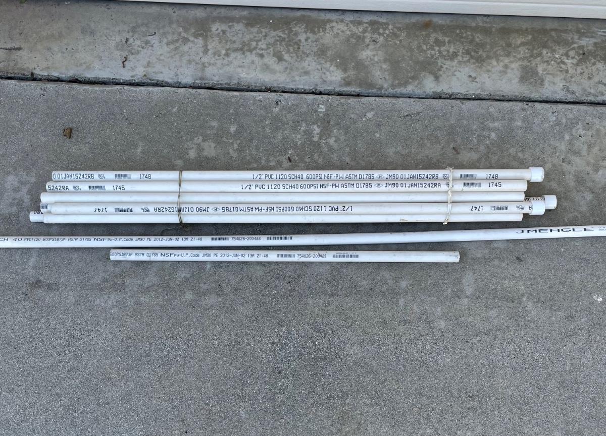 Lot of pvc pipe. 12 pieces 36” long, others as shown in photos.