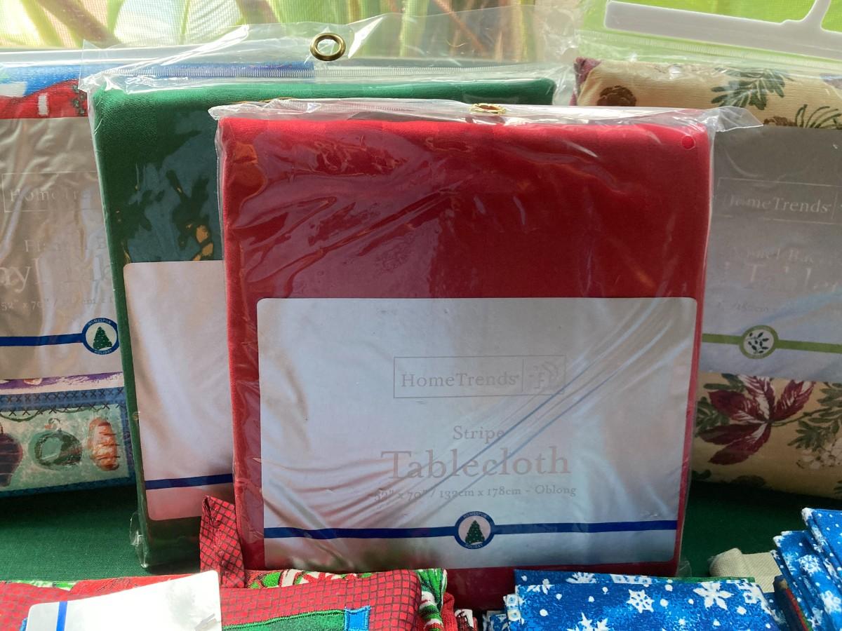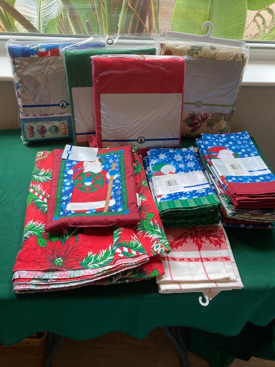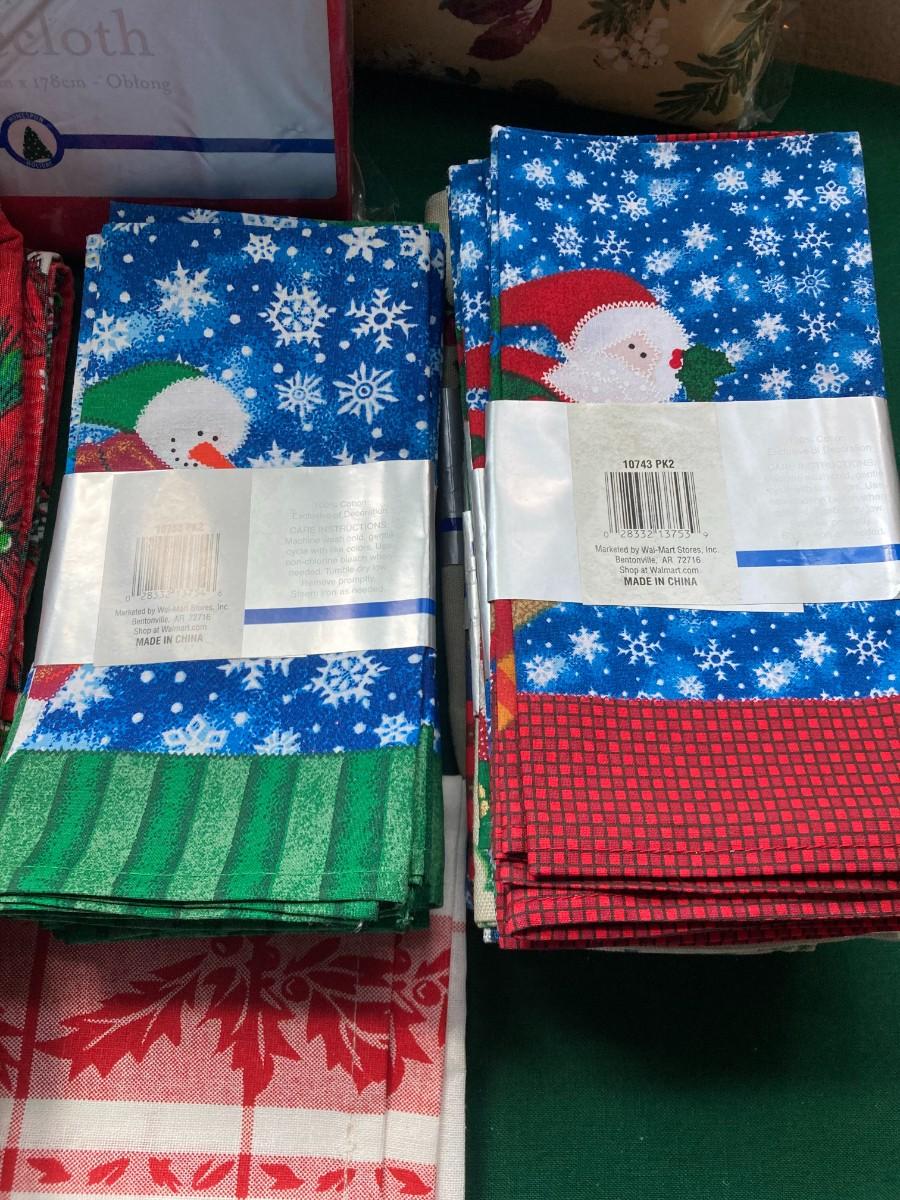 Various tablecloths,, napkins. Many brand new