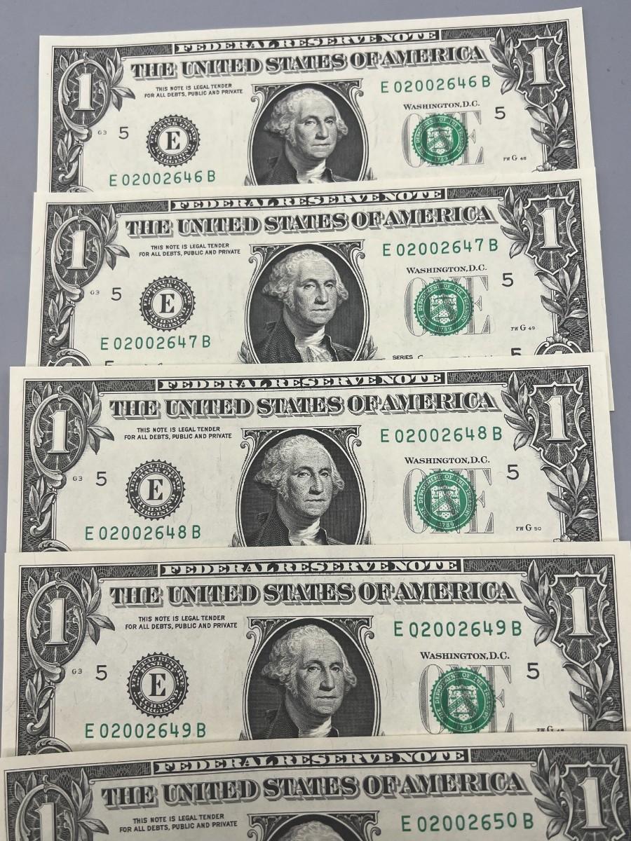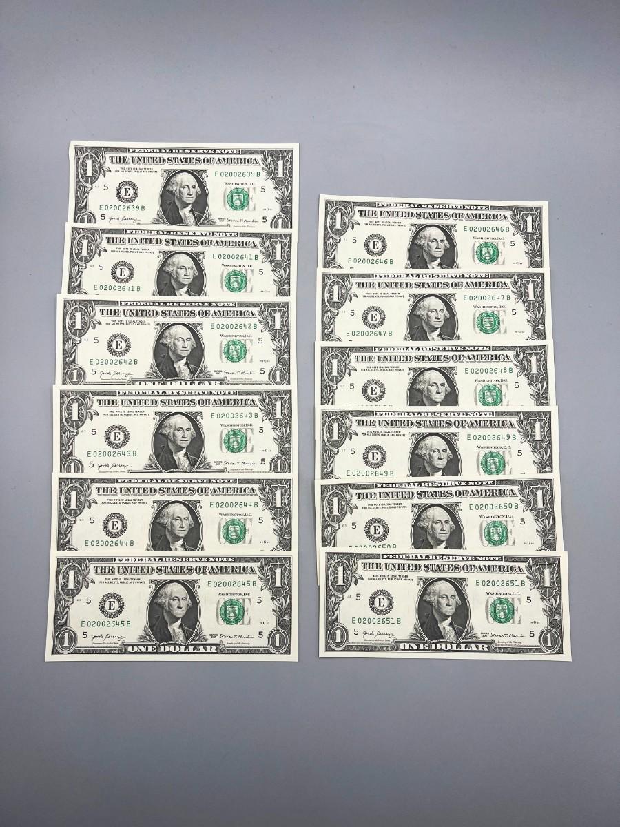 Lot of Sequential Near Mint 2017 Dollar Bills 02002639 & 02002641 - 02002651