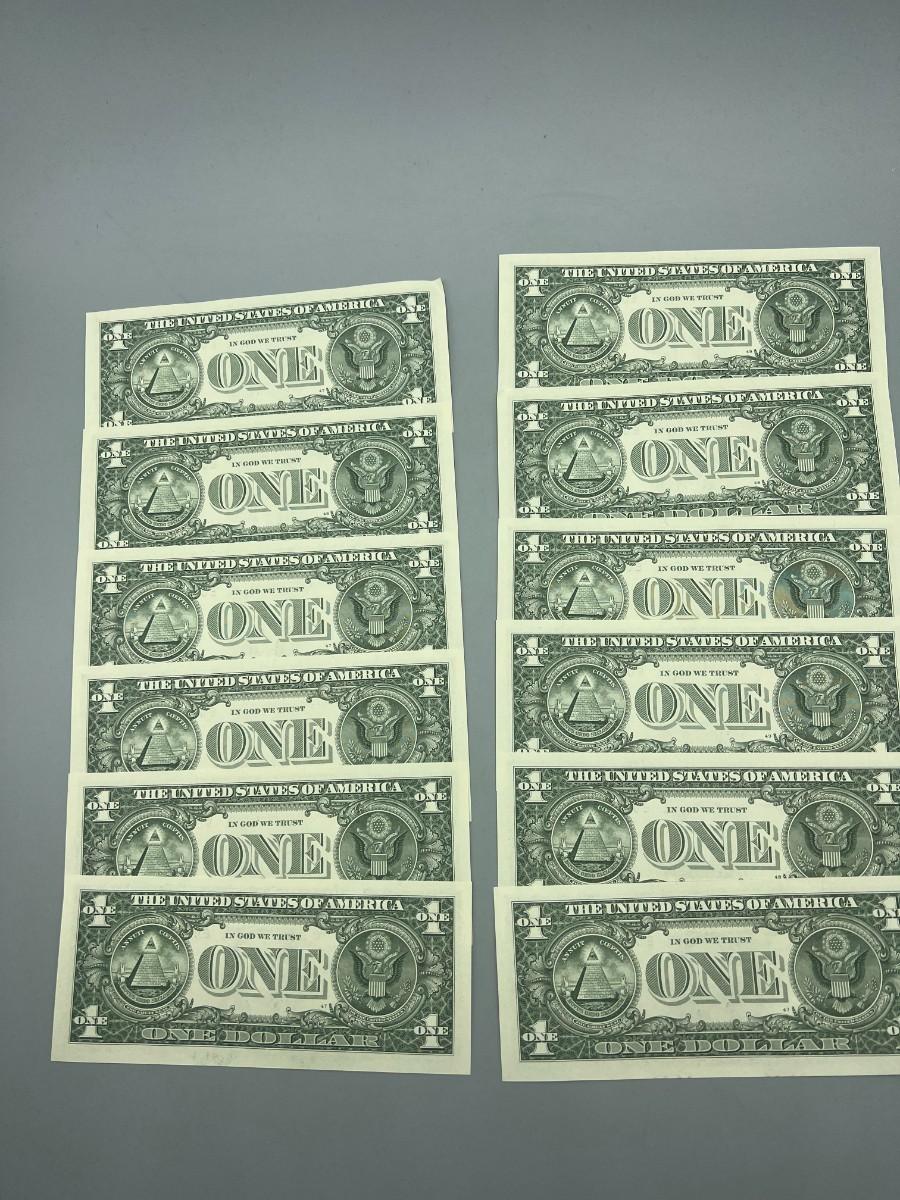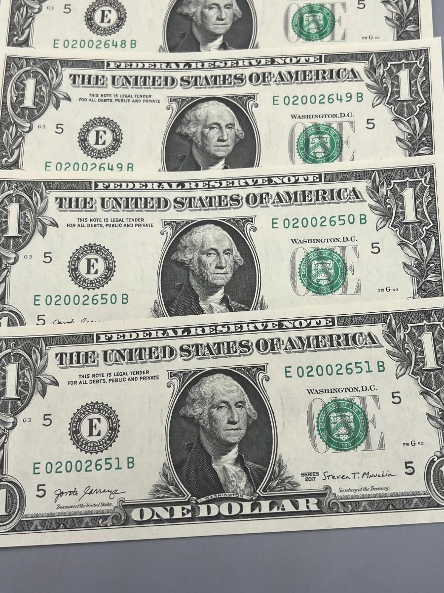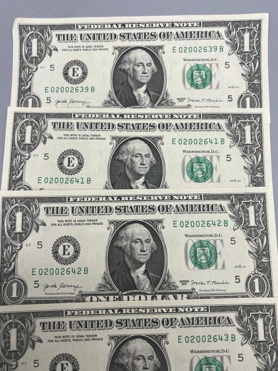 Lot of Sequential Near Mint 2017 $1 Dollar Bills 02002639 & 02002641 - 02002651.