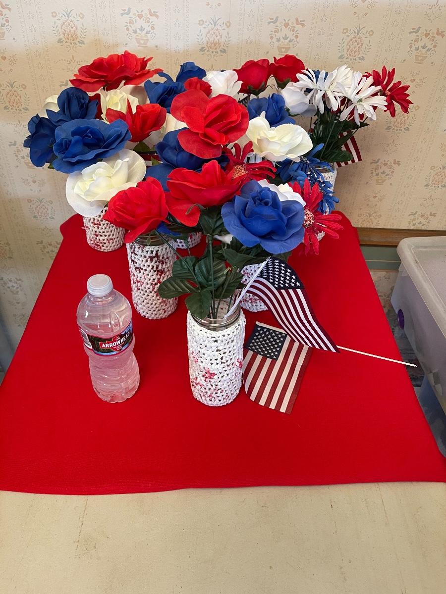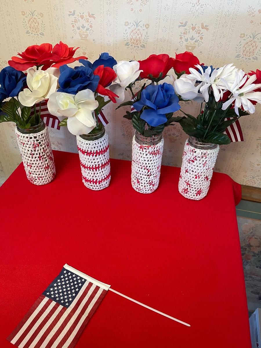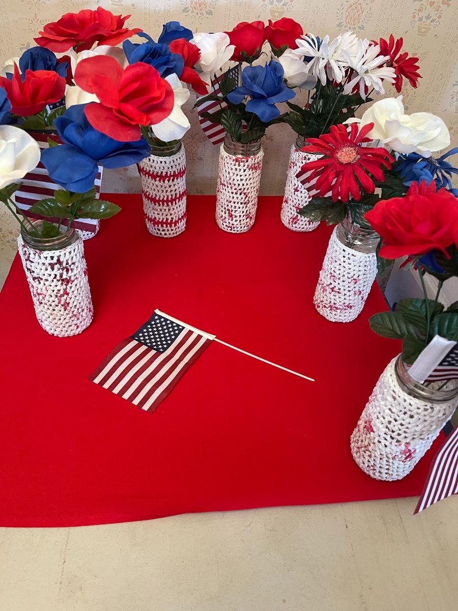 Lot of seven homemade Fourth of July vases