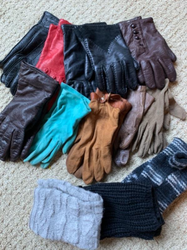 Lot of Several Leather and Cashmere gloves, Knit Mittens. Size 7. Good to new condition.