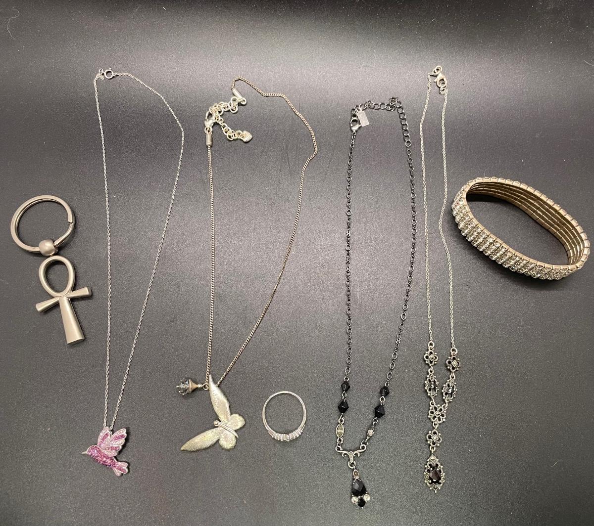 This lot includes: necklaces, a bracelet, a ring, and a keychain. All items are in great condition and don’t have any noticeable damages to the jewelry.