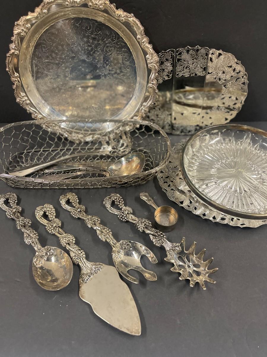 Lot of Silverplate and Stainless Steel Serving Pieces.