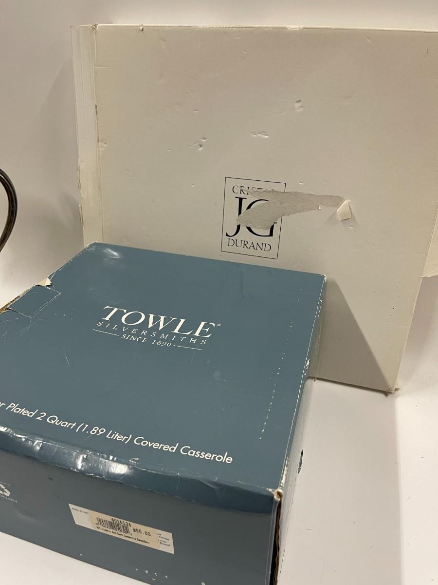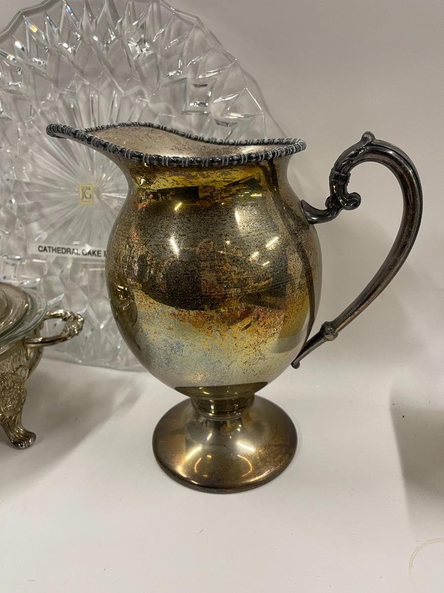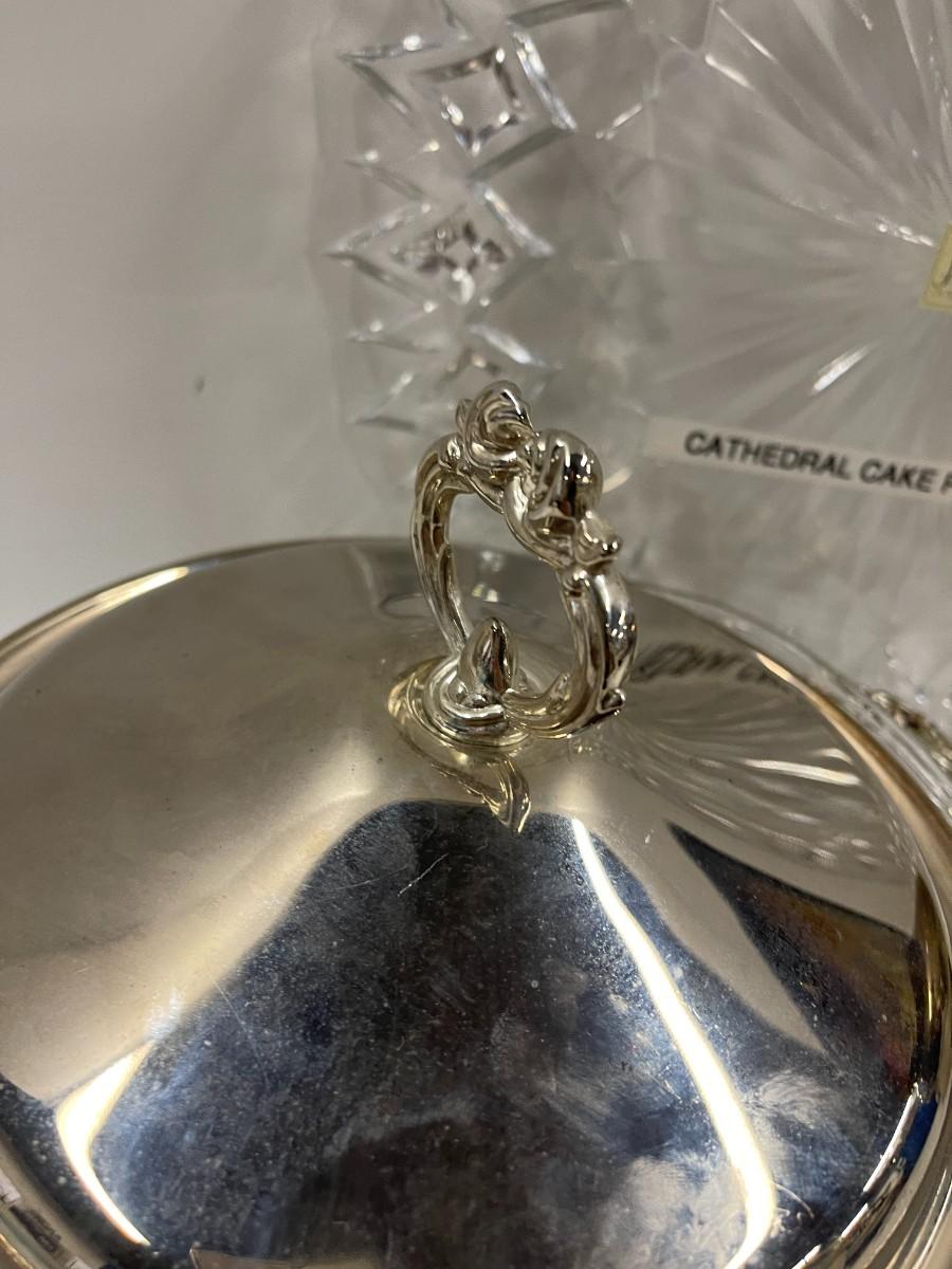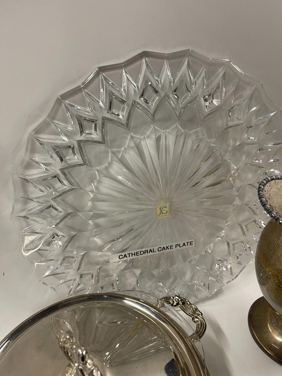 Lot of Silverplate Serving Piece & Durand Crystal Cathedral Cake Plate