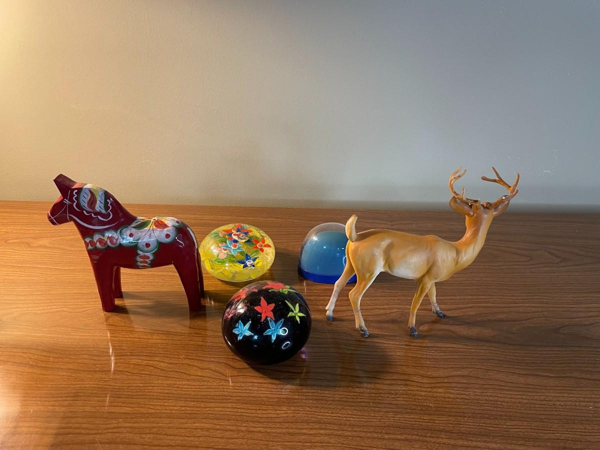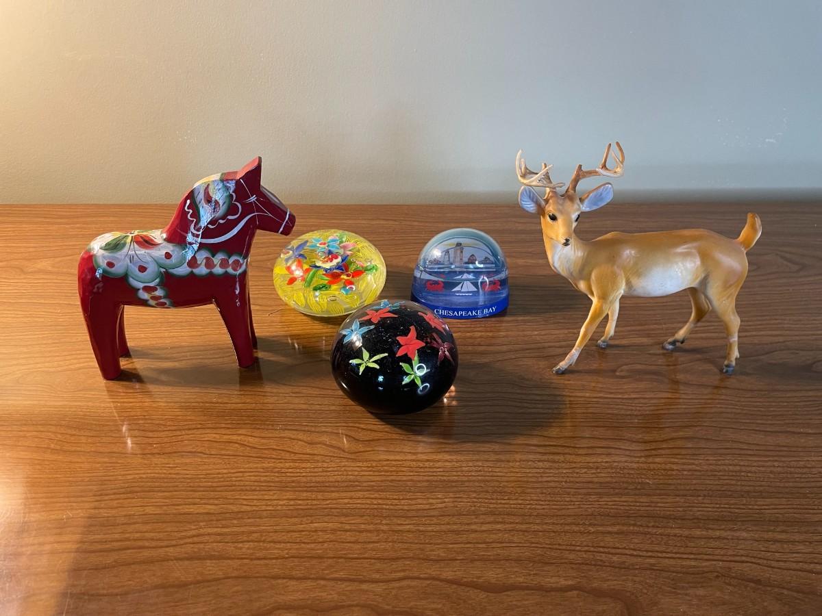 Lot of Small Animal Figurines, Snow Globe and Other Decorative Paperweights
