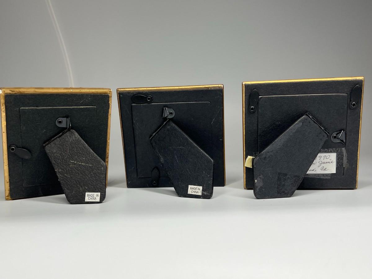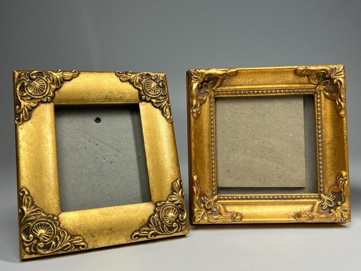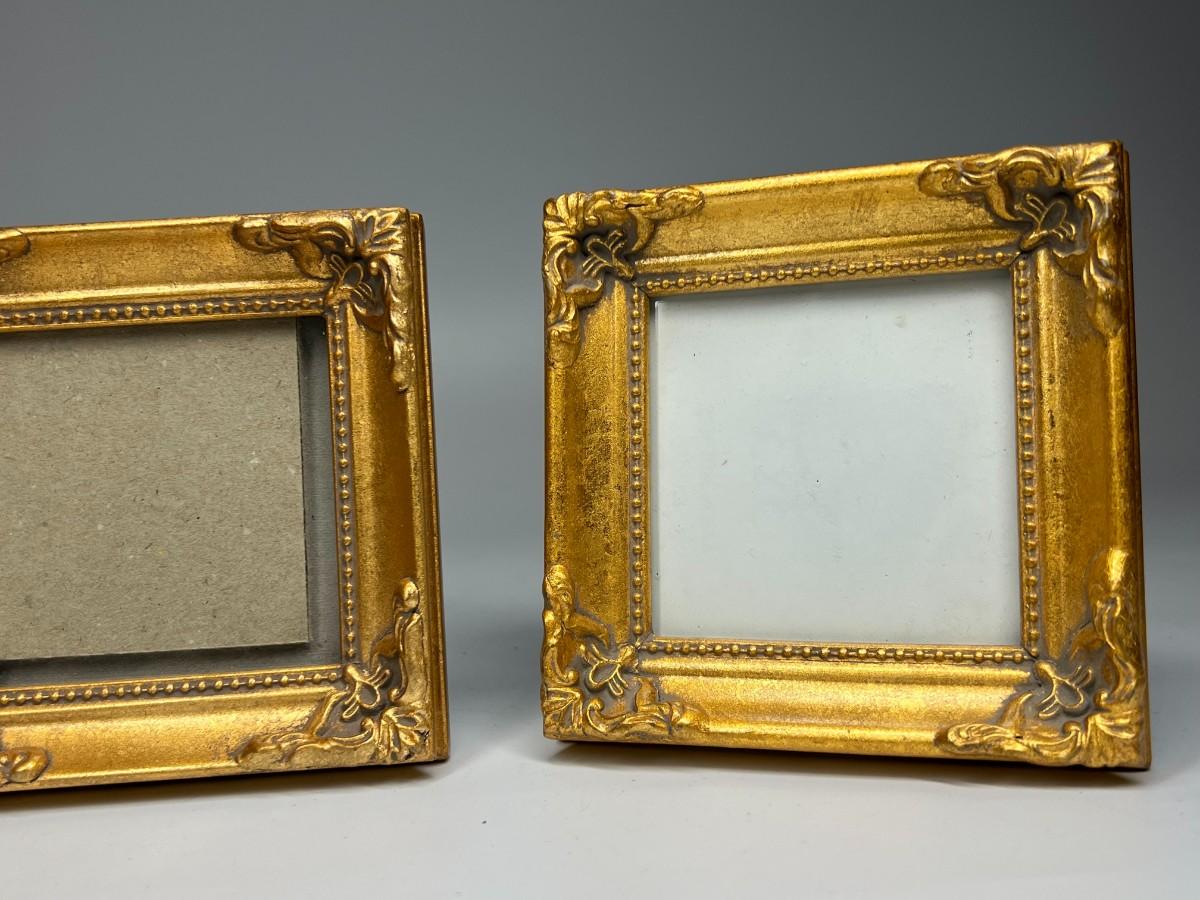 Lot of Small Antique Vintage Styled Gold Frames, the back of one of the frames is lifting near one of the corners, there is no other significant damage to the other frames and is in overall good useable condition. Check pictures for more details and for sizing.