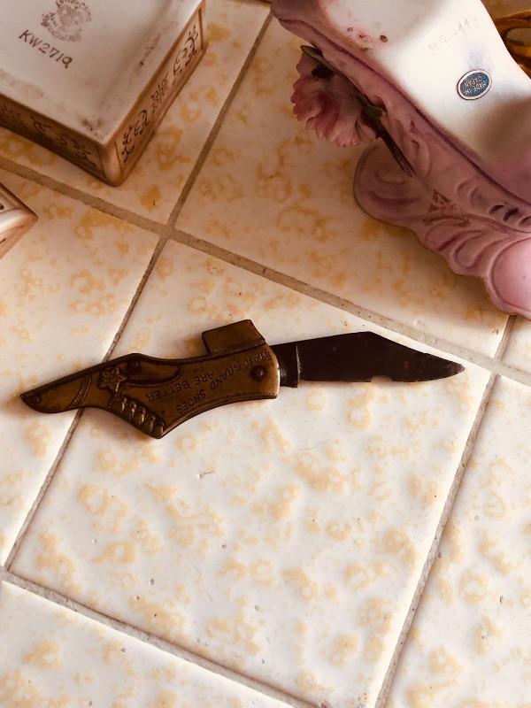 Nice little mixed lot of decor items. Interesting mix. The little brass shoe is actually a pocket knife from Star Brand Shoes.