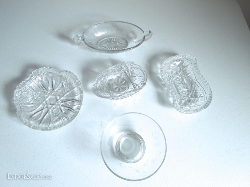Lot of Small Cut and Etched Glass Dishes
