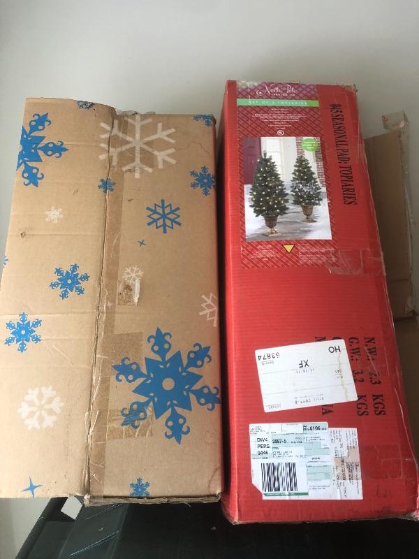 Lot of Small Decorative Christmas Trees in Boxes
