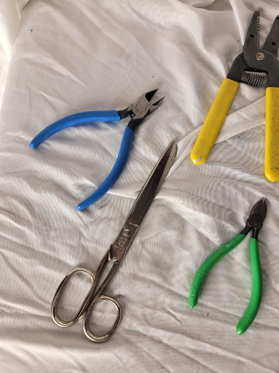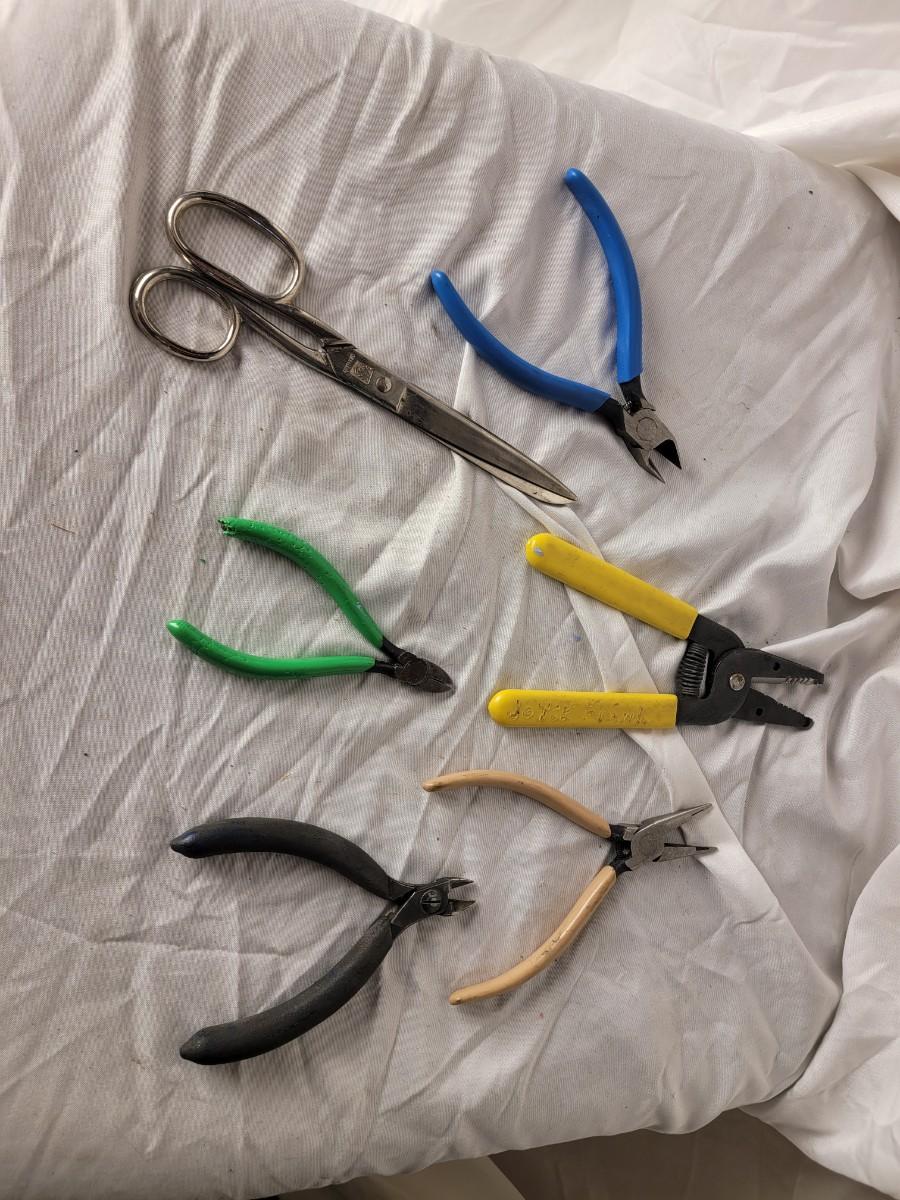These were the hand tools from an HP Tech used in the '70s pretty high quality scissors have a little tarnish.