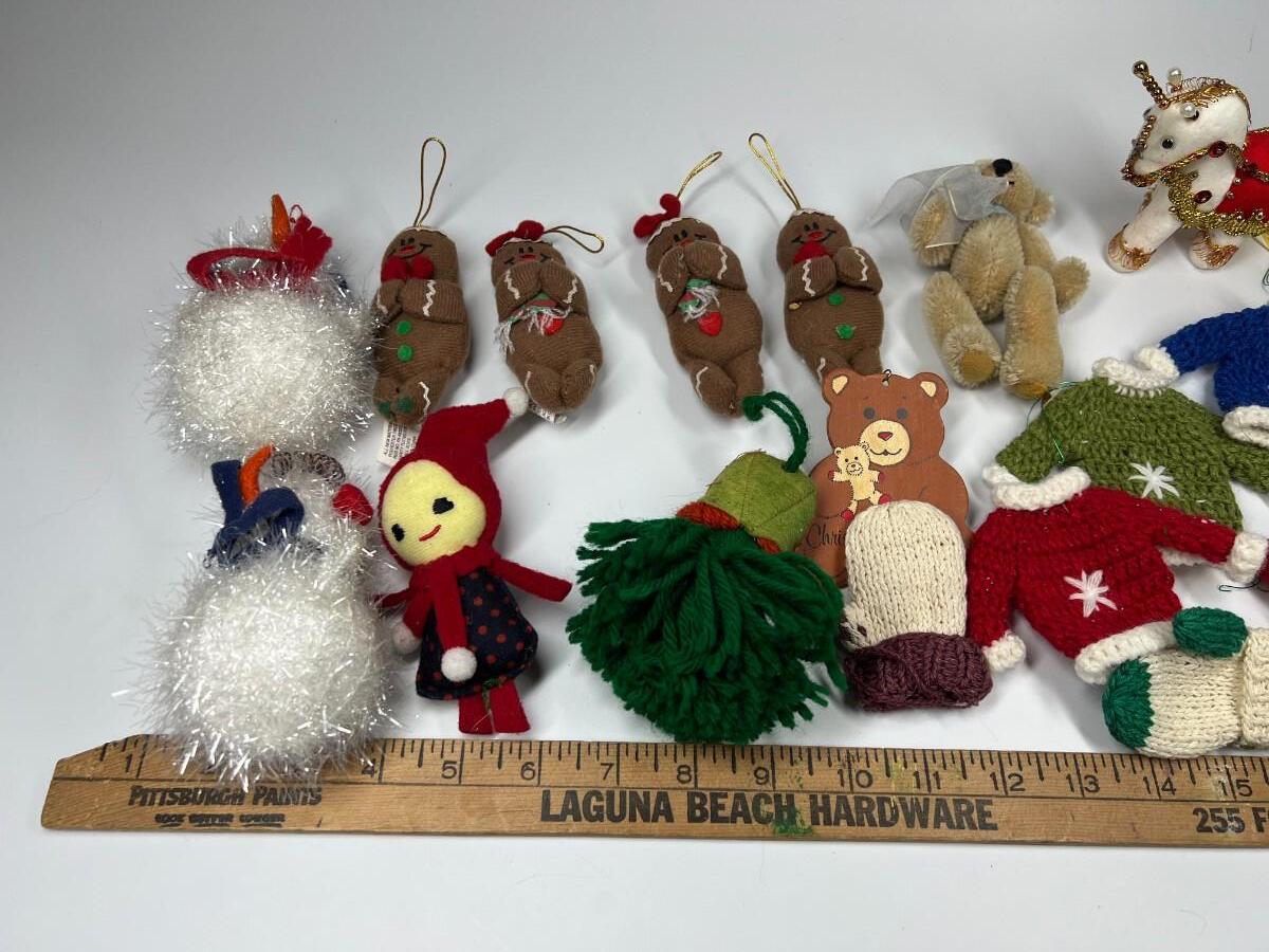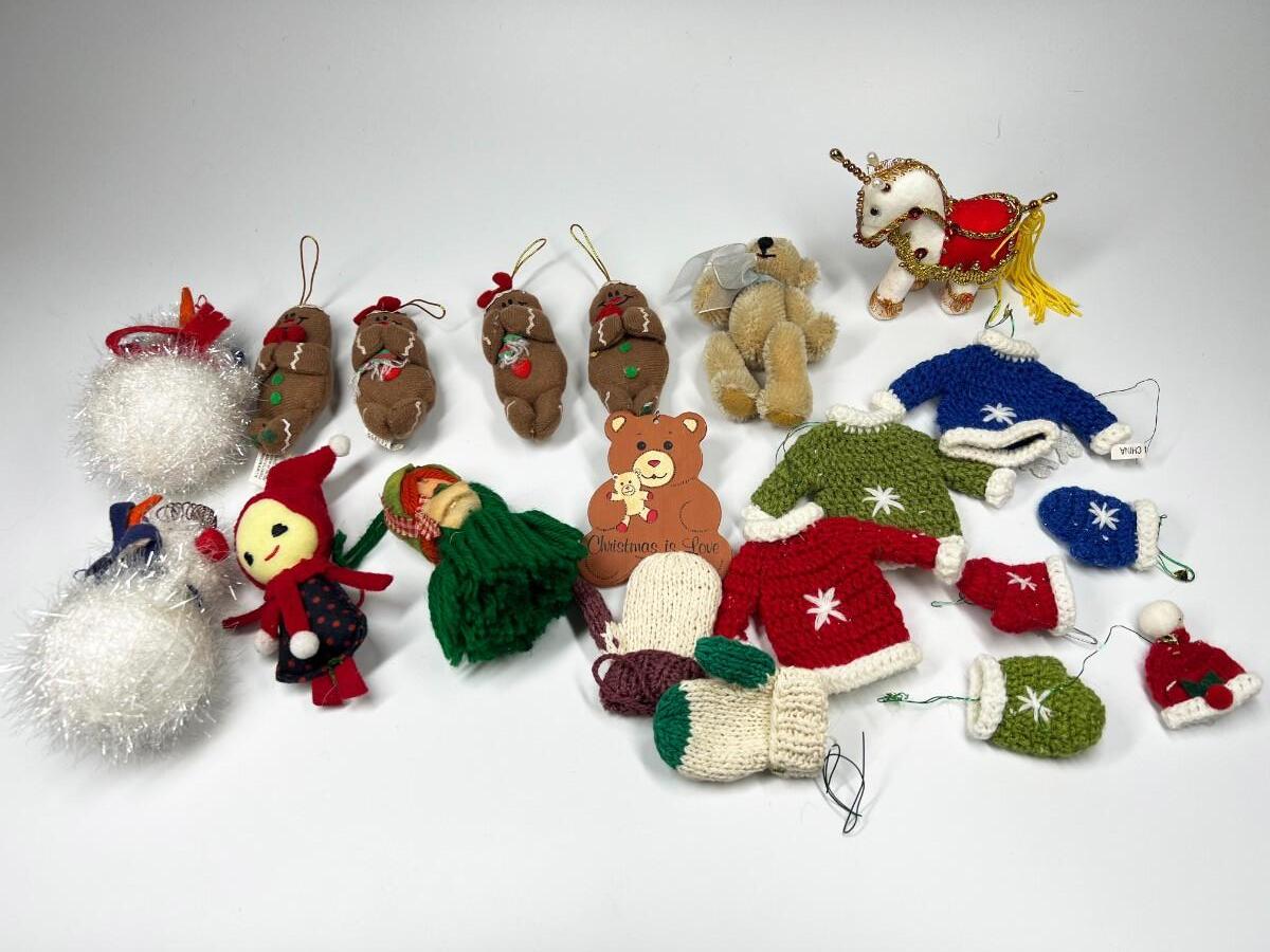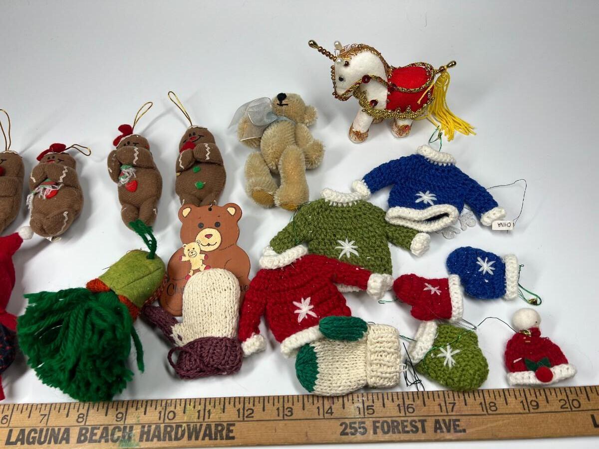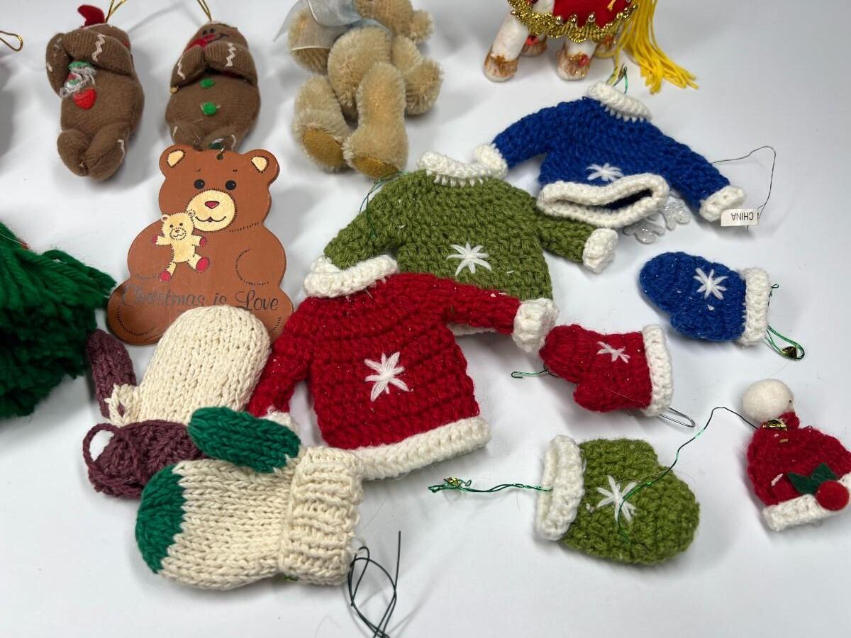 Lot of Small Felt Knitted Christmas Tree Ornaments Ginger Bread Men, Mittens, Snowmen & More