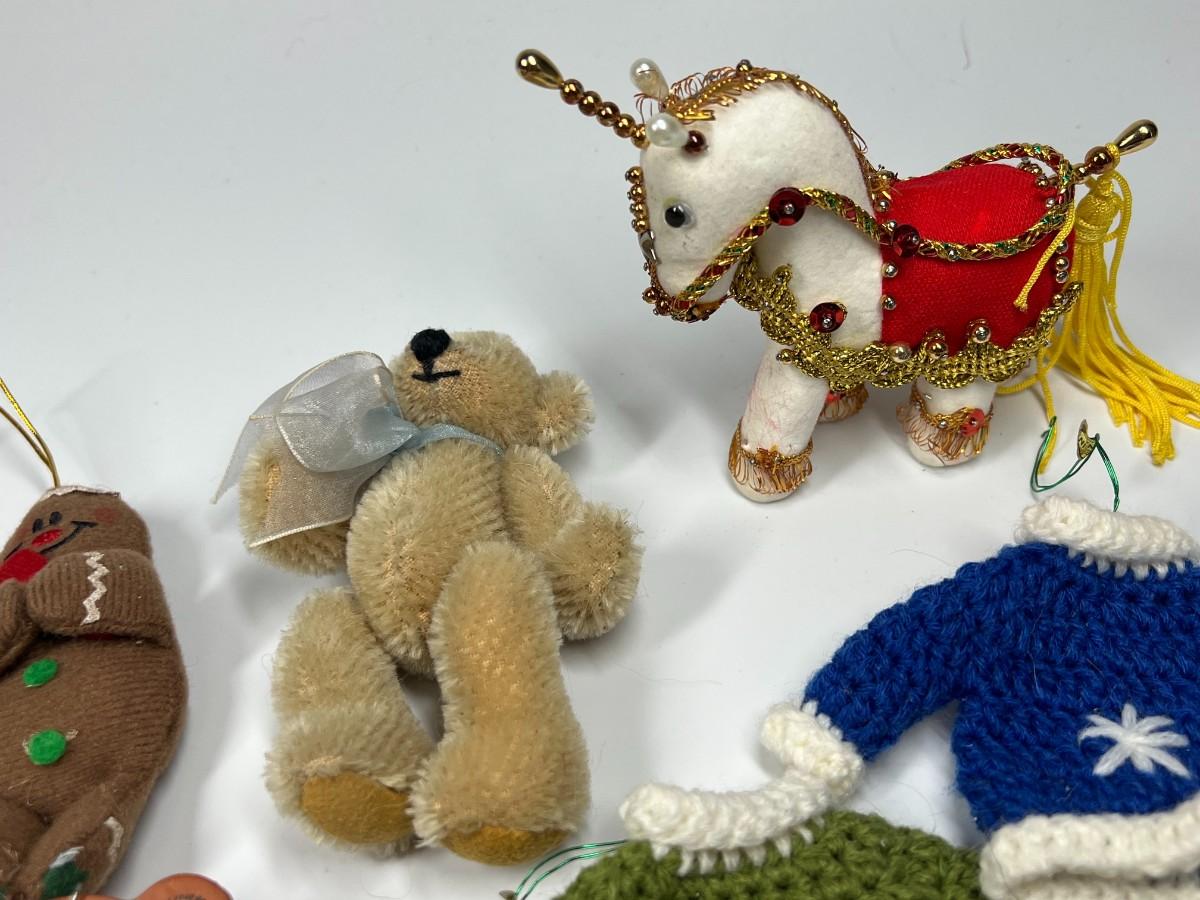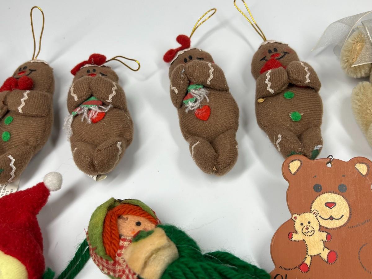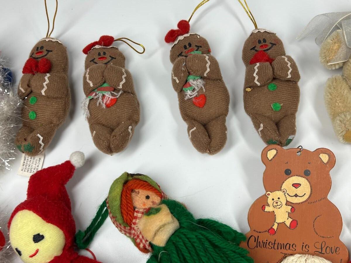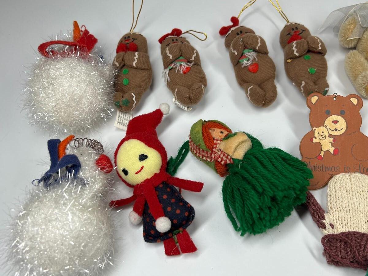 Lot of Small Felt Knitted Christmas Tree Ornaments Ginger Bread Men, Mittens, Snowmen & More