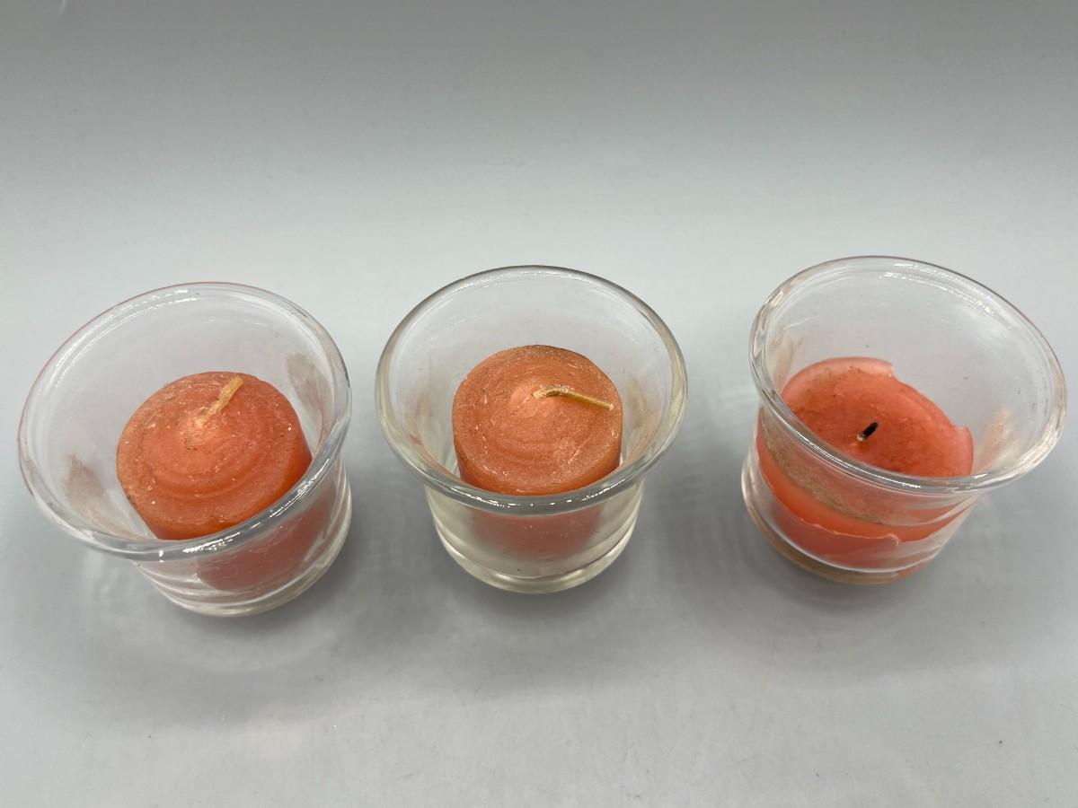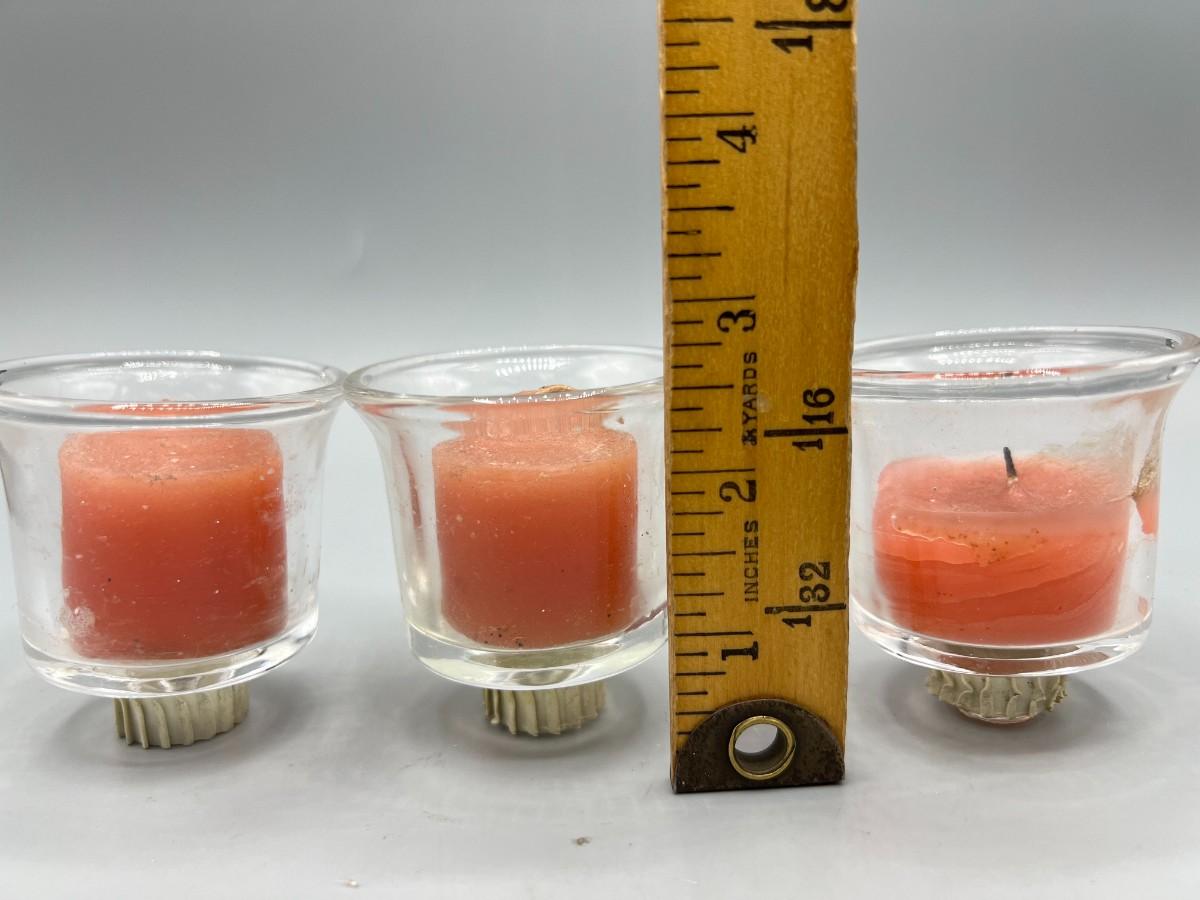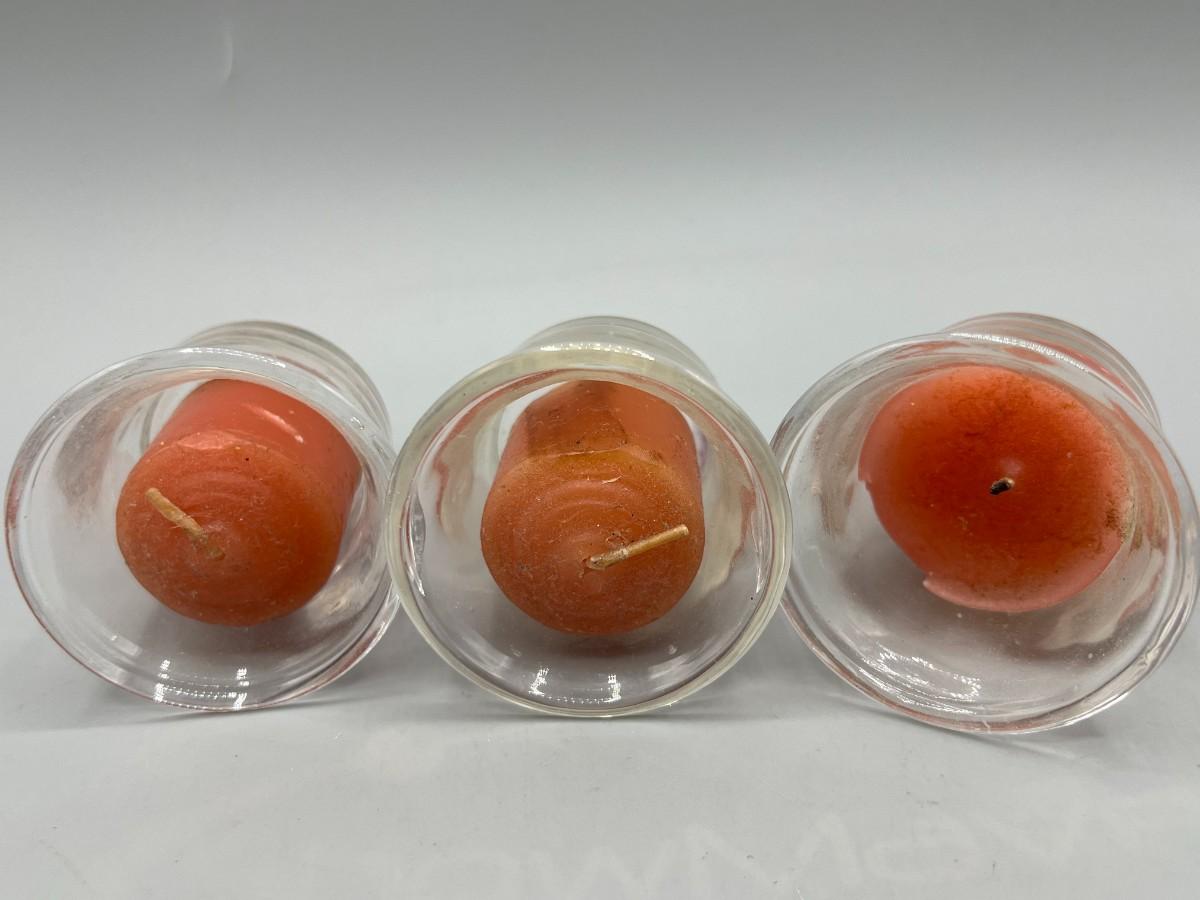 Lot of Small Glass Tealight Candle Holders, there is some light wear, but there is no significant damage to the glass and is in good useable condition. Check pictures for more details and for sizing.