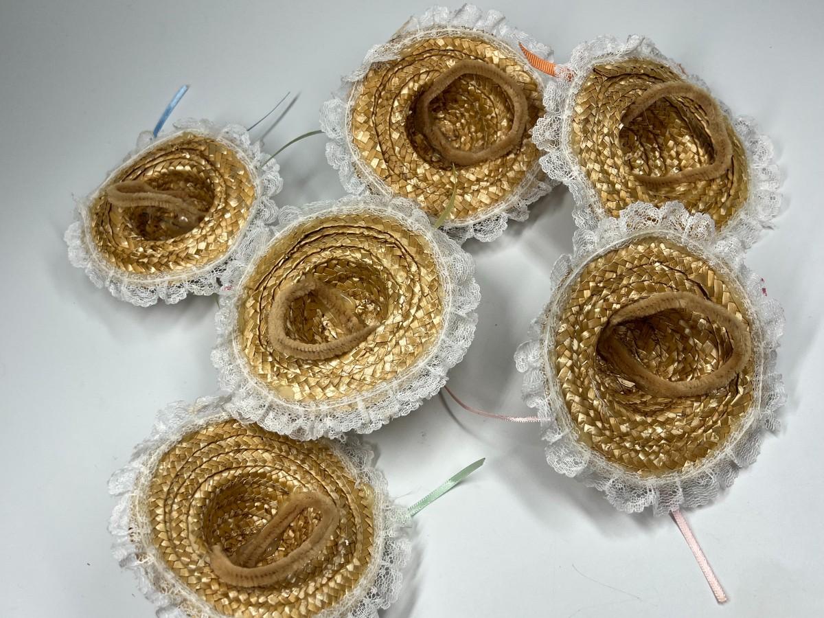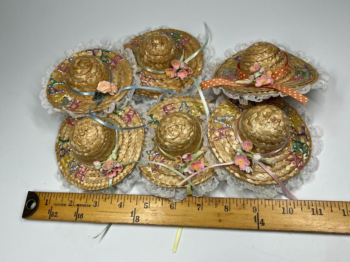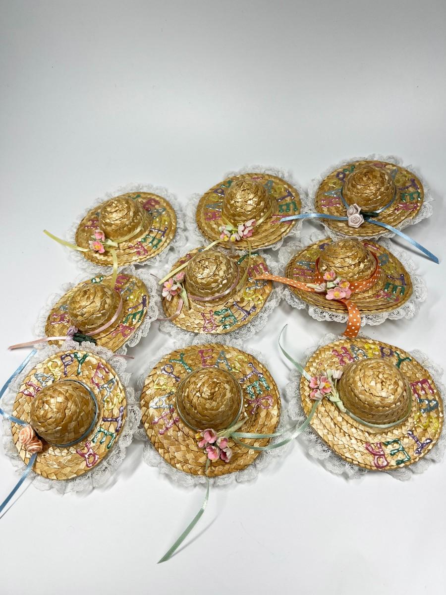 Lot of Small Happy Easter Weaved Doll Figurine Sun Hat Accessories