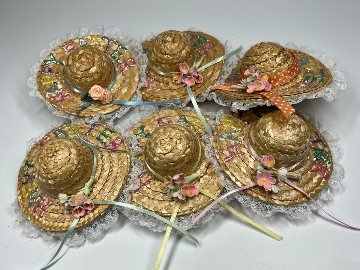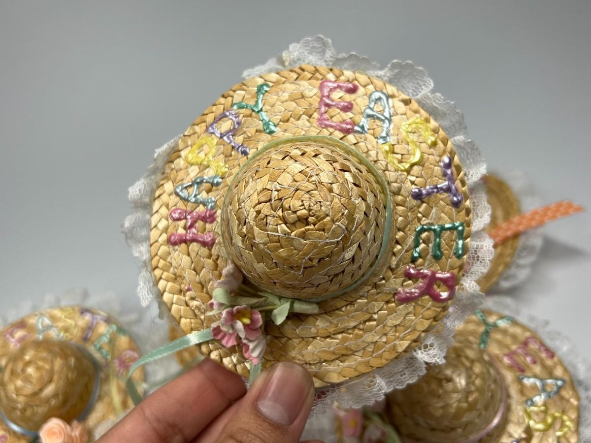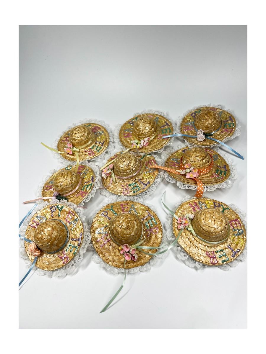 Lot of Small Happy Easter Weaved Doll Figurine Sun Hat Accessories