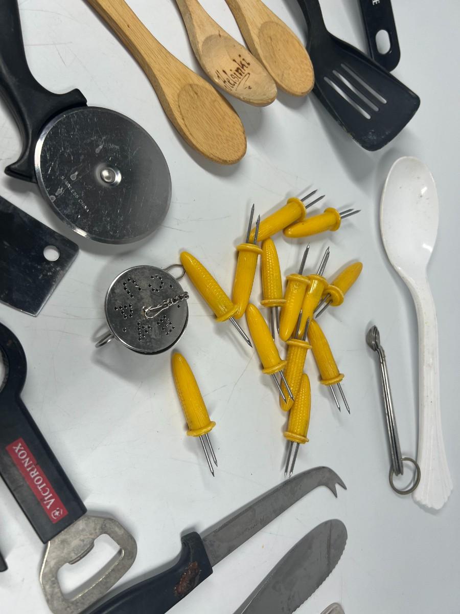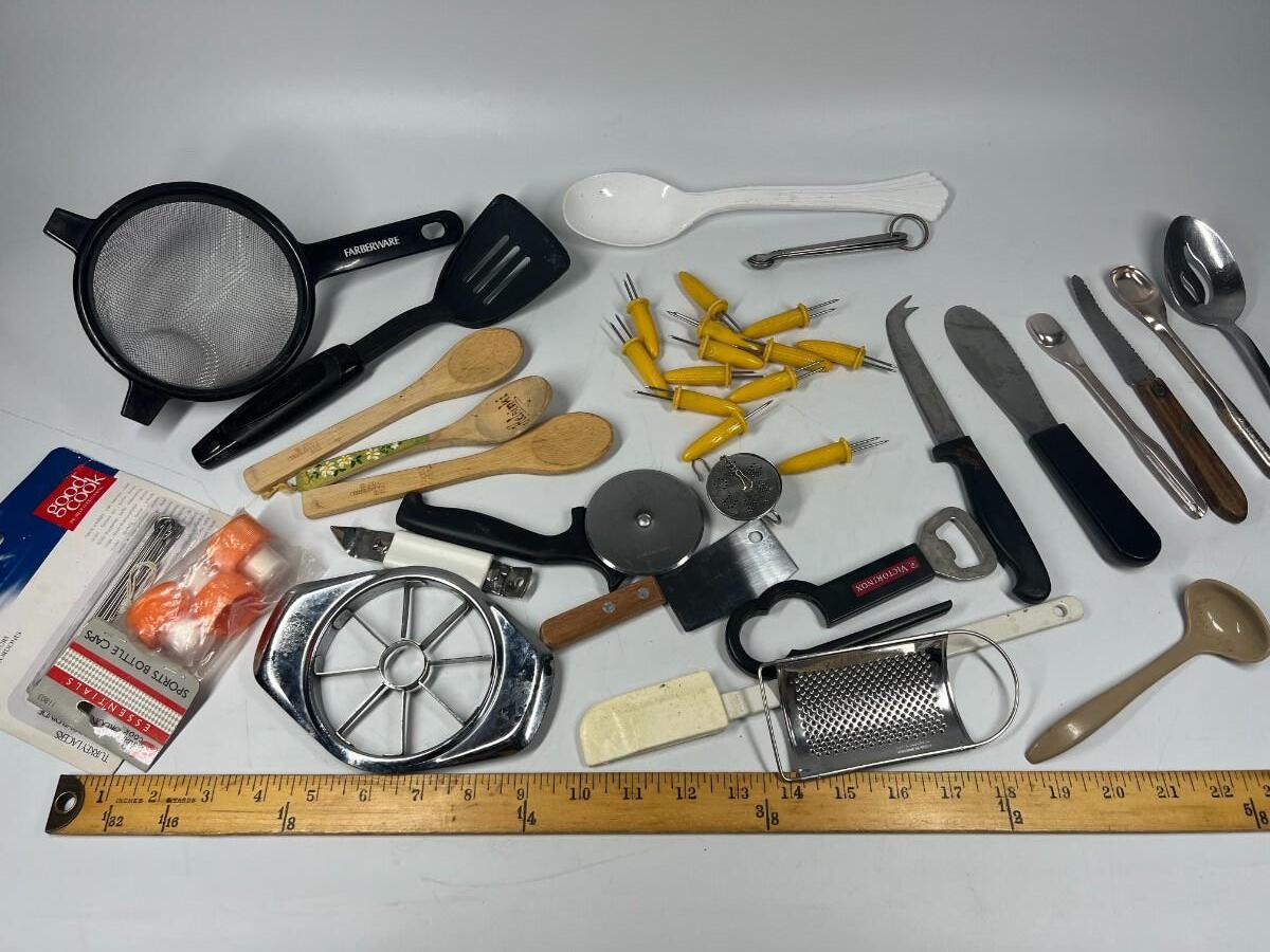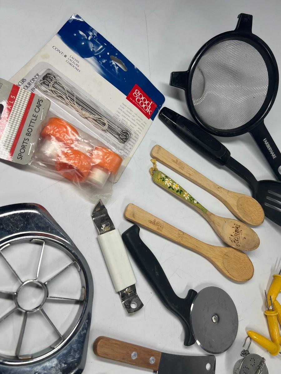 Lot of Small Retro Miscellaneous Kitchen Utensils Cob Holders, Peelers, Strainers, & More
