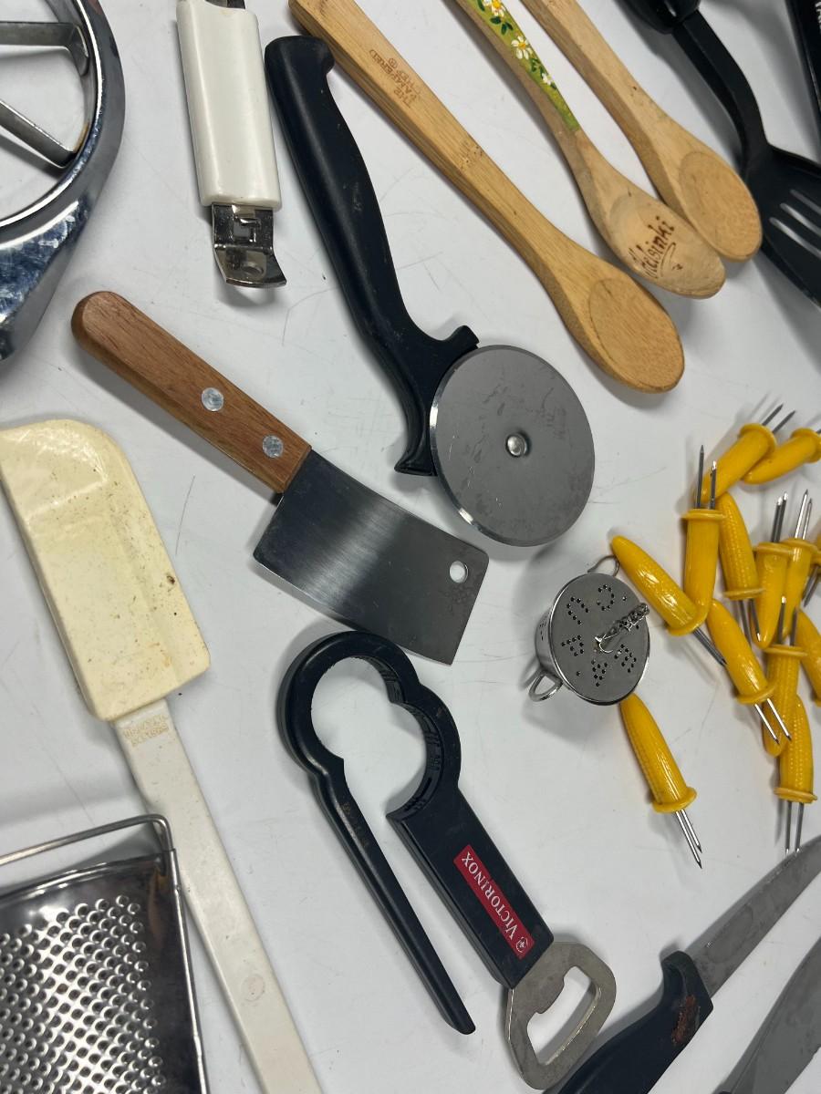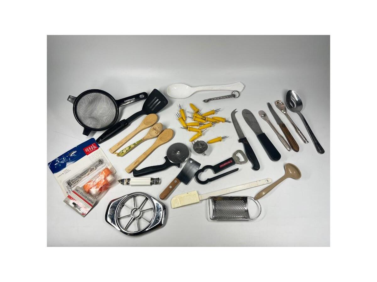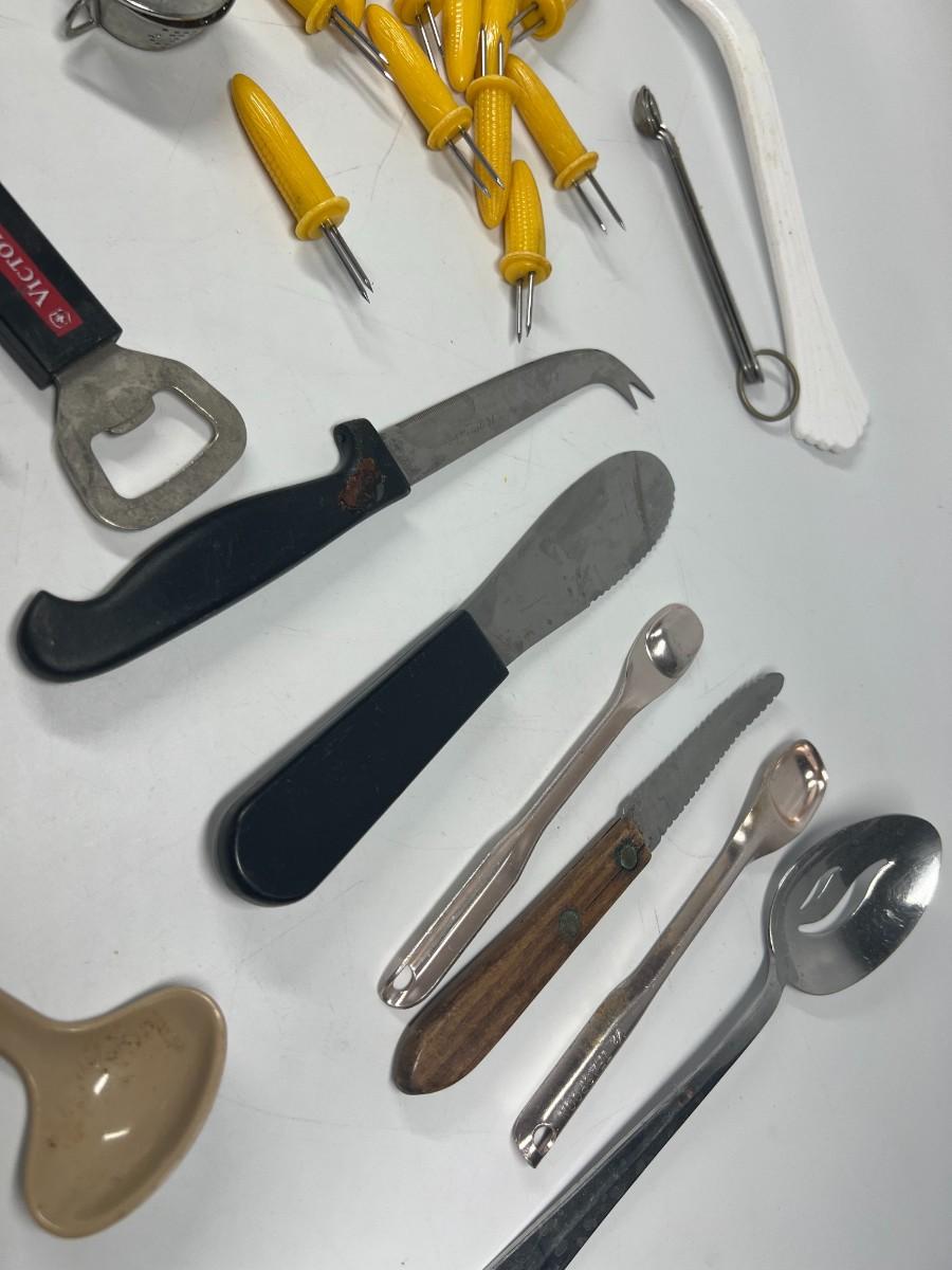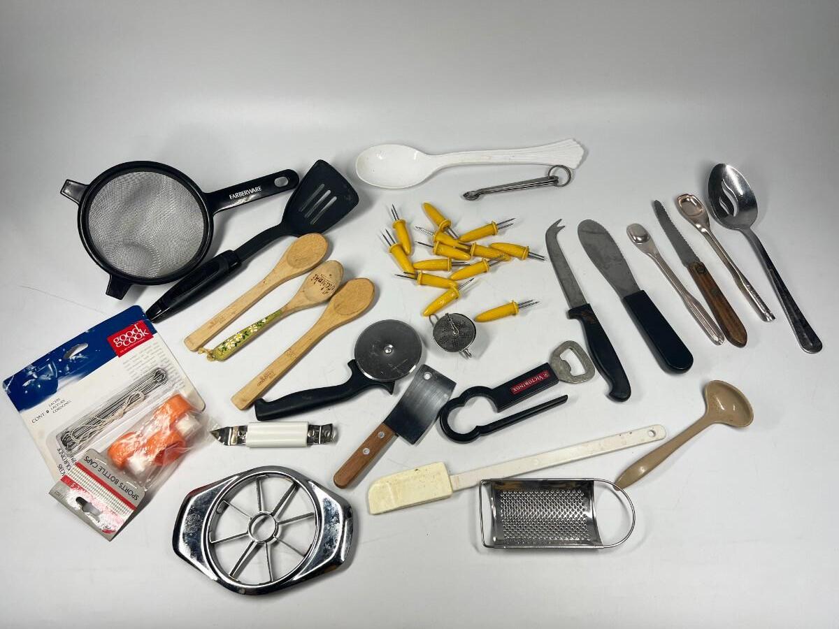 Lot of Small Retro Miscellaneous Kitchen Utensils Cob Holders, Peelers, Strainers, & More