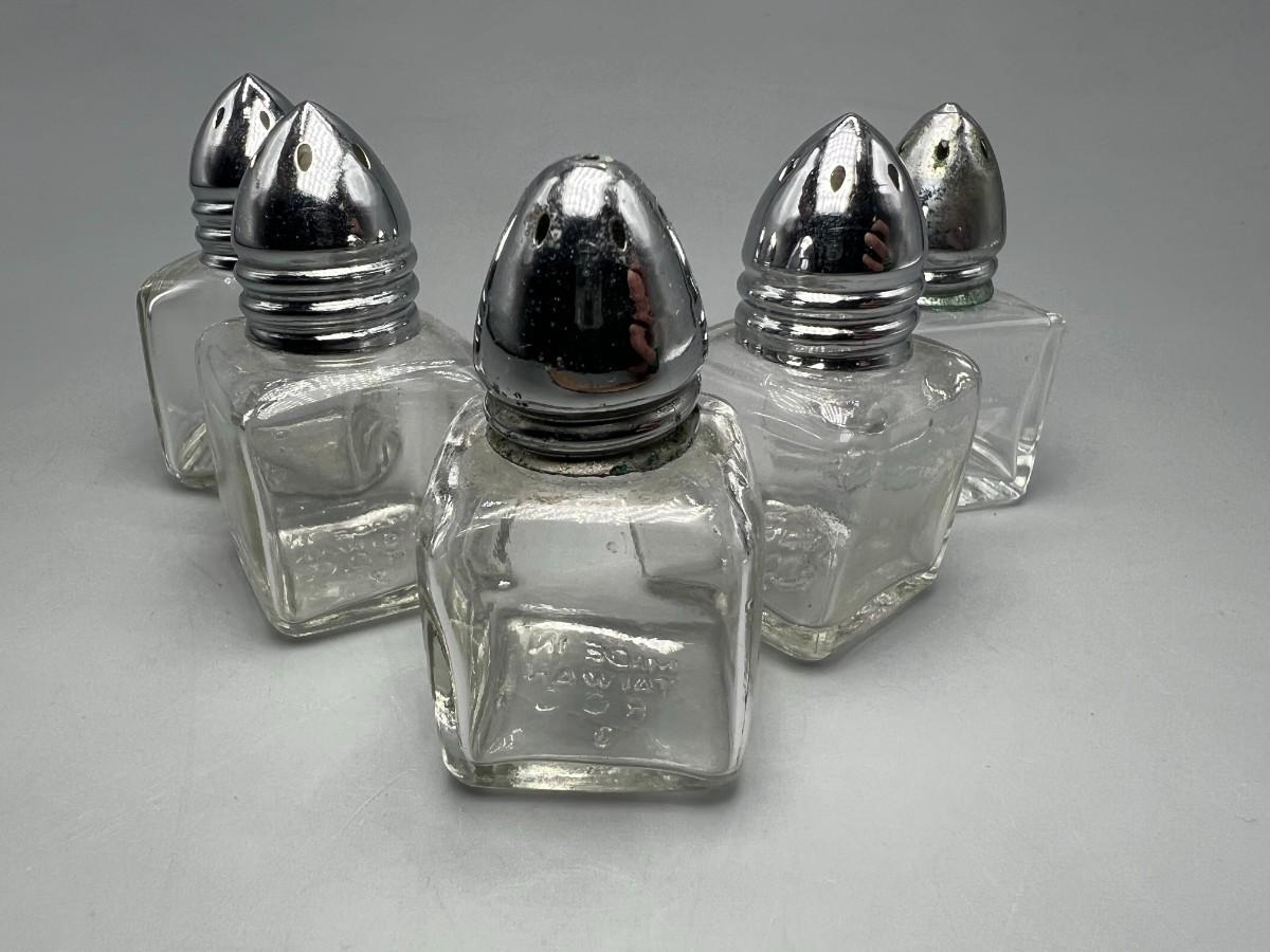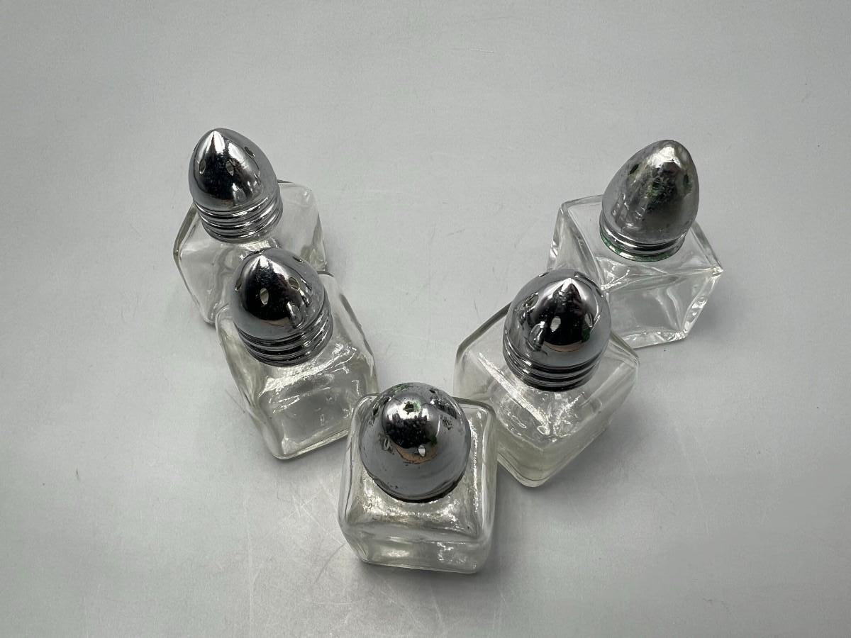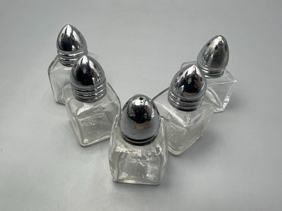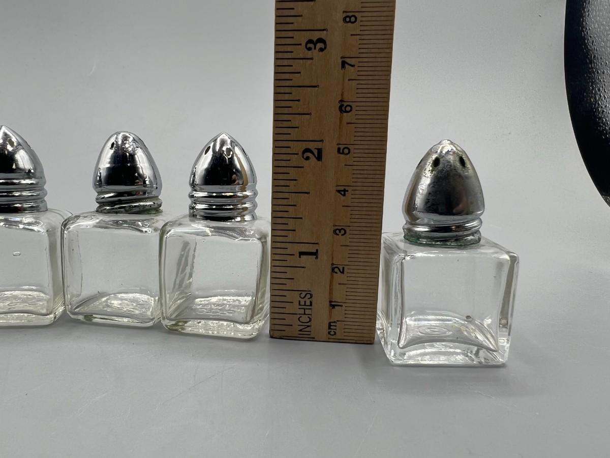 There is noticeable wear to one of the caps of the shakers, but there is no significant damage to the rest of the lot and is in good useable condition. Check pictures for more details and for sizing.