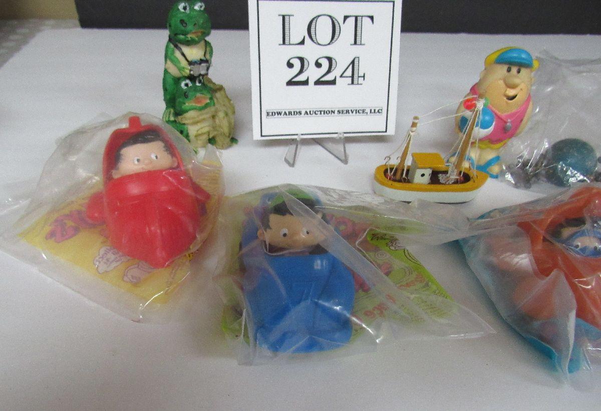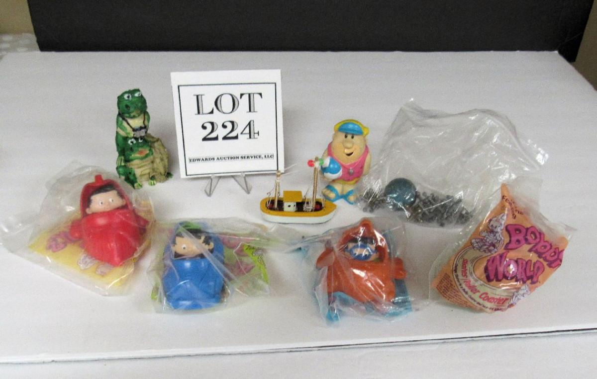 Good shape on most. The ball is useless. The boat has glue remnants on bottom. Shipping is available at shipping cost plus $5.00 handling fee on one box, $10.00 handling fee on two boxes, $15.00 handling fee on 3 boxes. Helps cover shipping materials and labor cost.