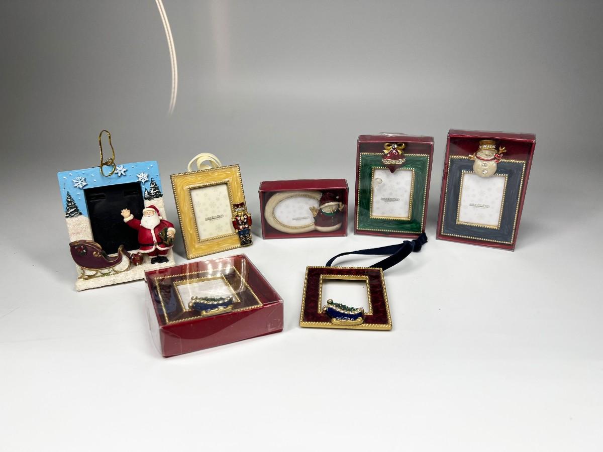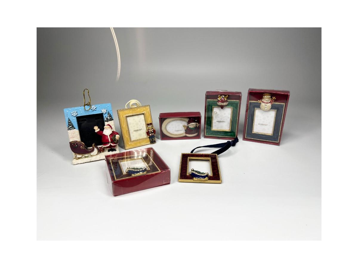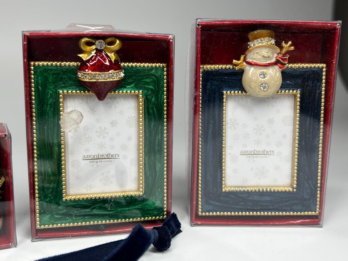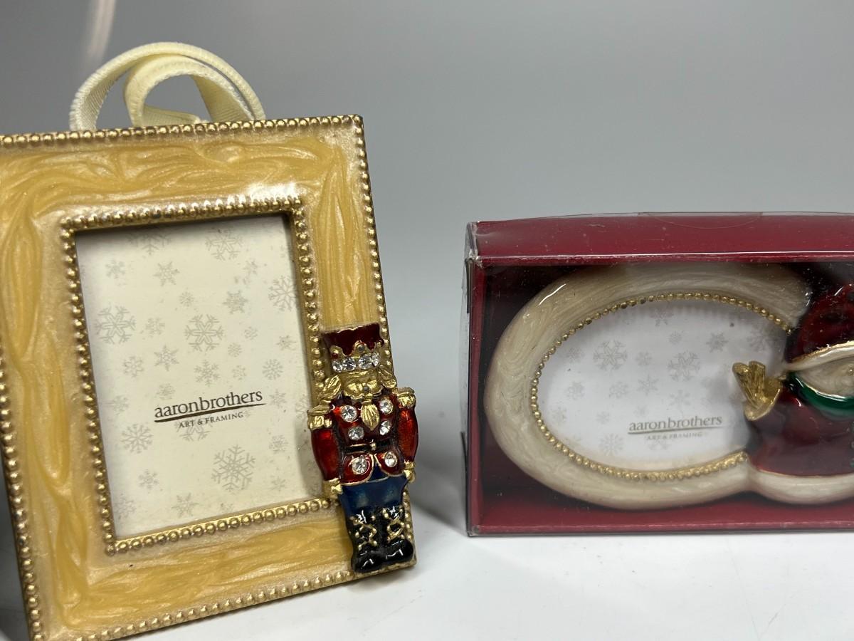 Lot of Small Unused Aaron Brothers Christmas Holiday Display Hanging Ornament Frames & More, the holiday sled frame does not have the metal stand that is attached to the back of the frames, the frames in the box have not been used. Check pictures for more details and for sizing.