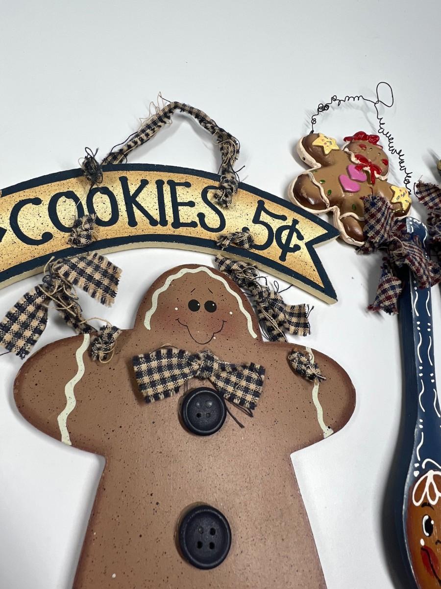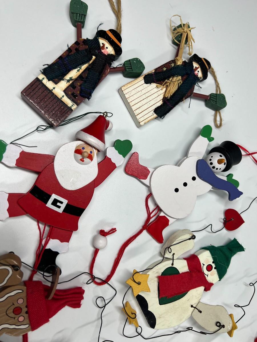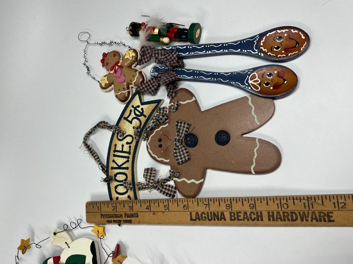 Lot of Small Wood Ornaments & Hanging Decor Gingerbread Men, Snowmen, Santa Claus & More