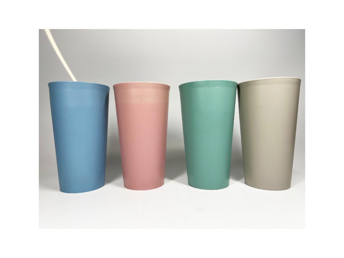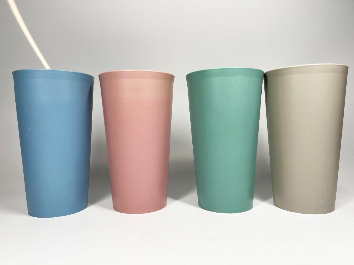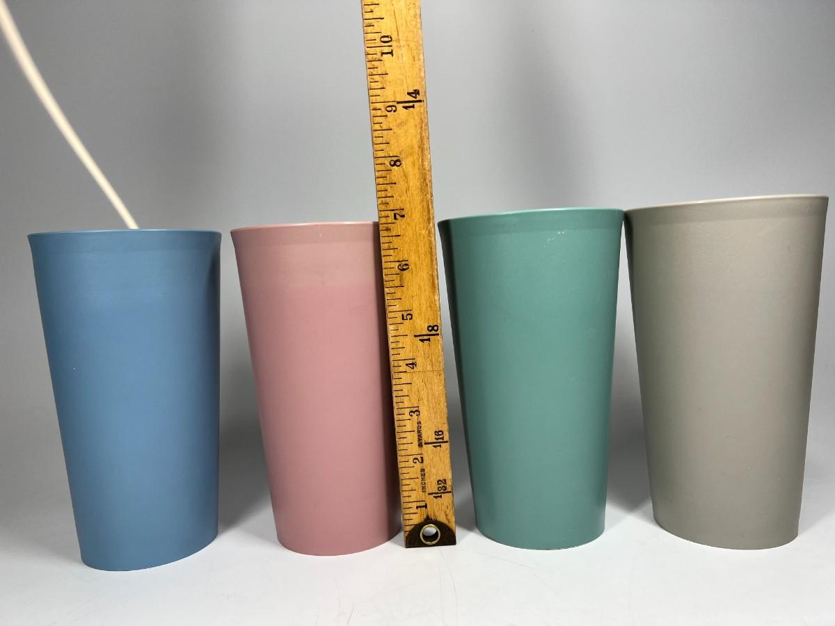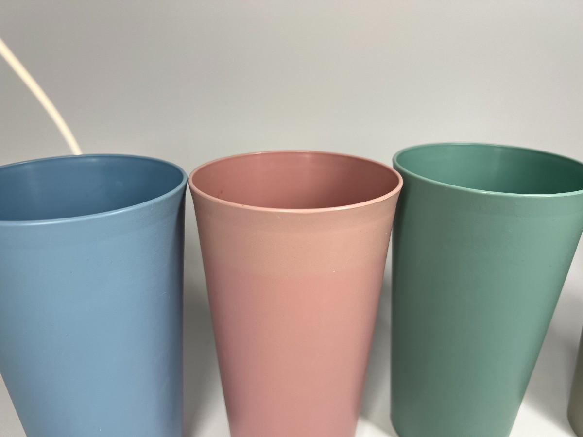 Lot of Smooth Plastic Matte Color Drinking Cups, there is no significant damage to any of the cups and is in good useable condition. Check pictures for more details and for sizing.