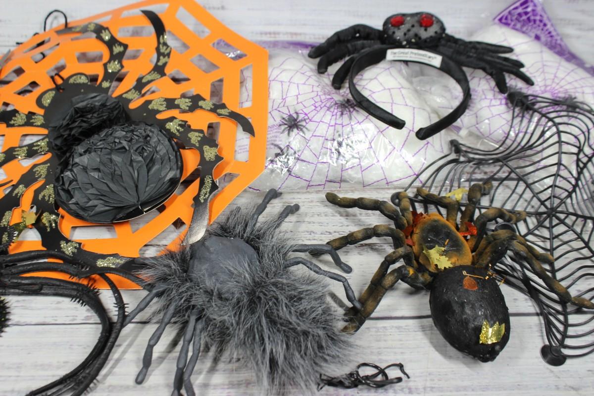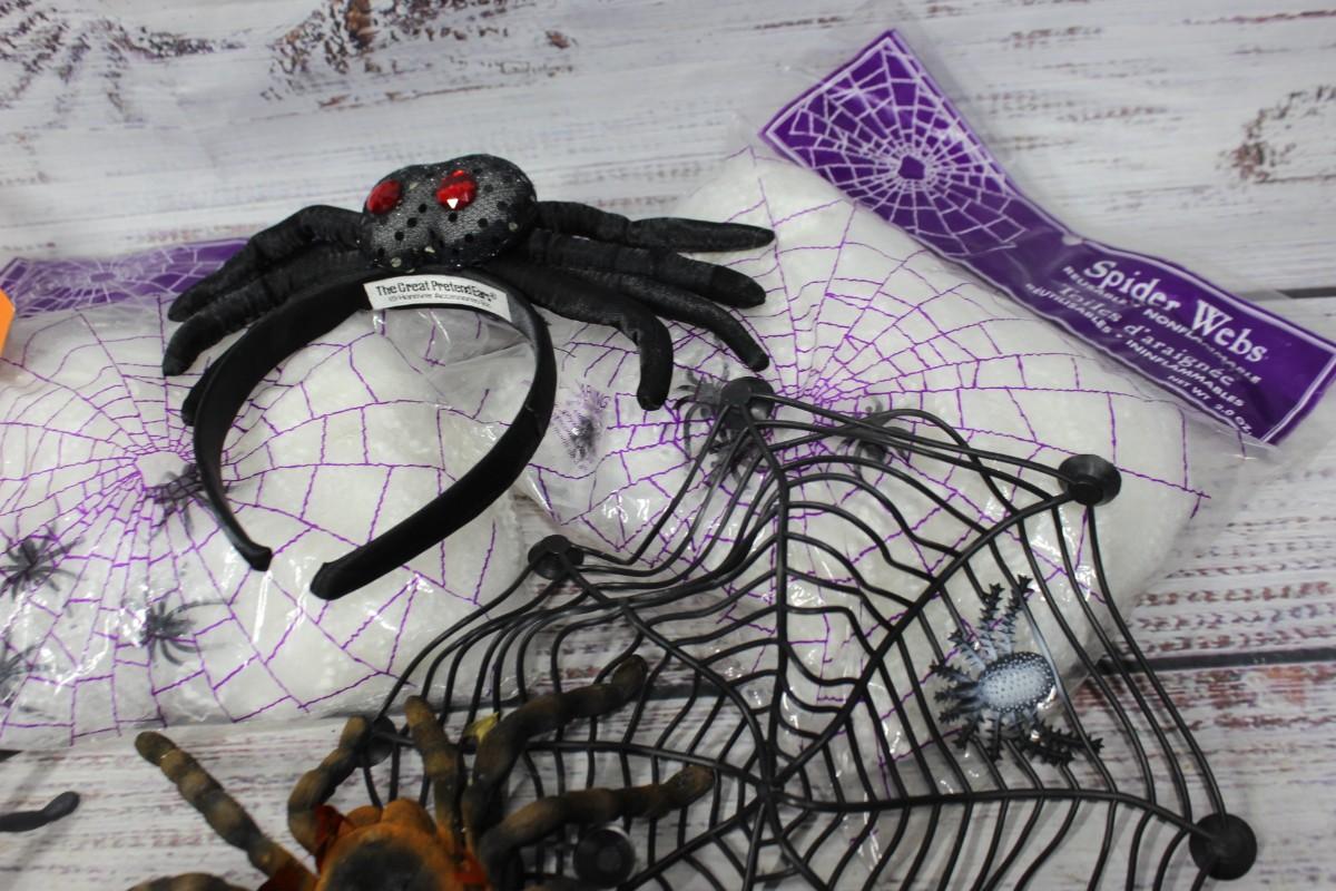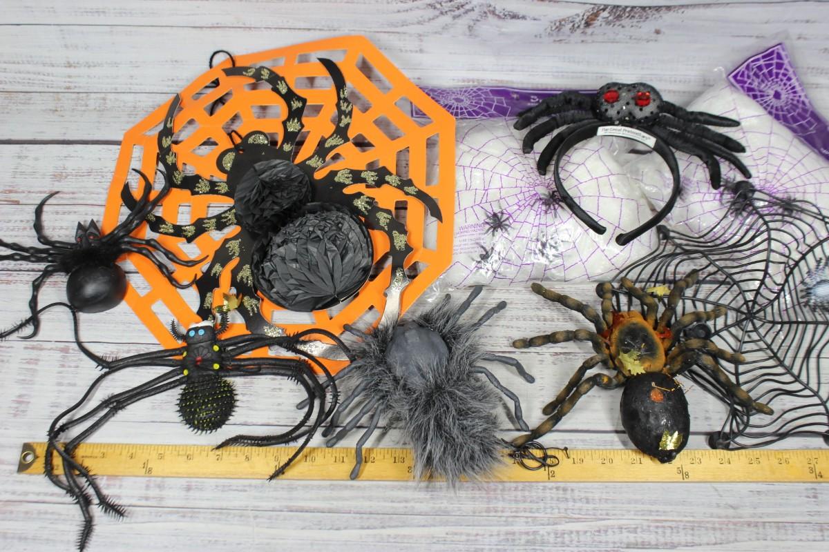 Lot of Spooky Creepy Spider Halloween Decorations, there is no significant damage to any of the pieces of decor and is in good useable condition. Check pictures for more details and for sizing.