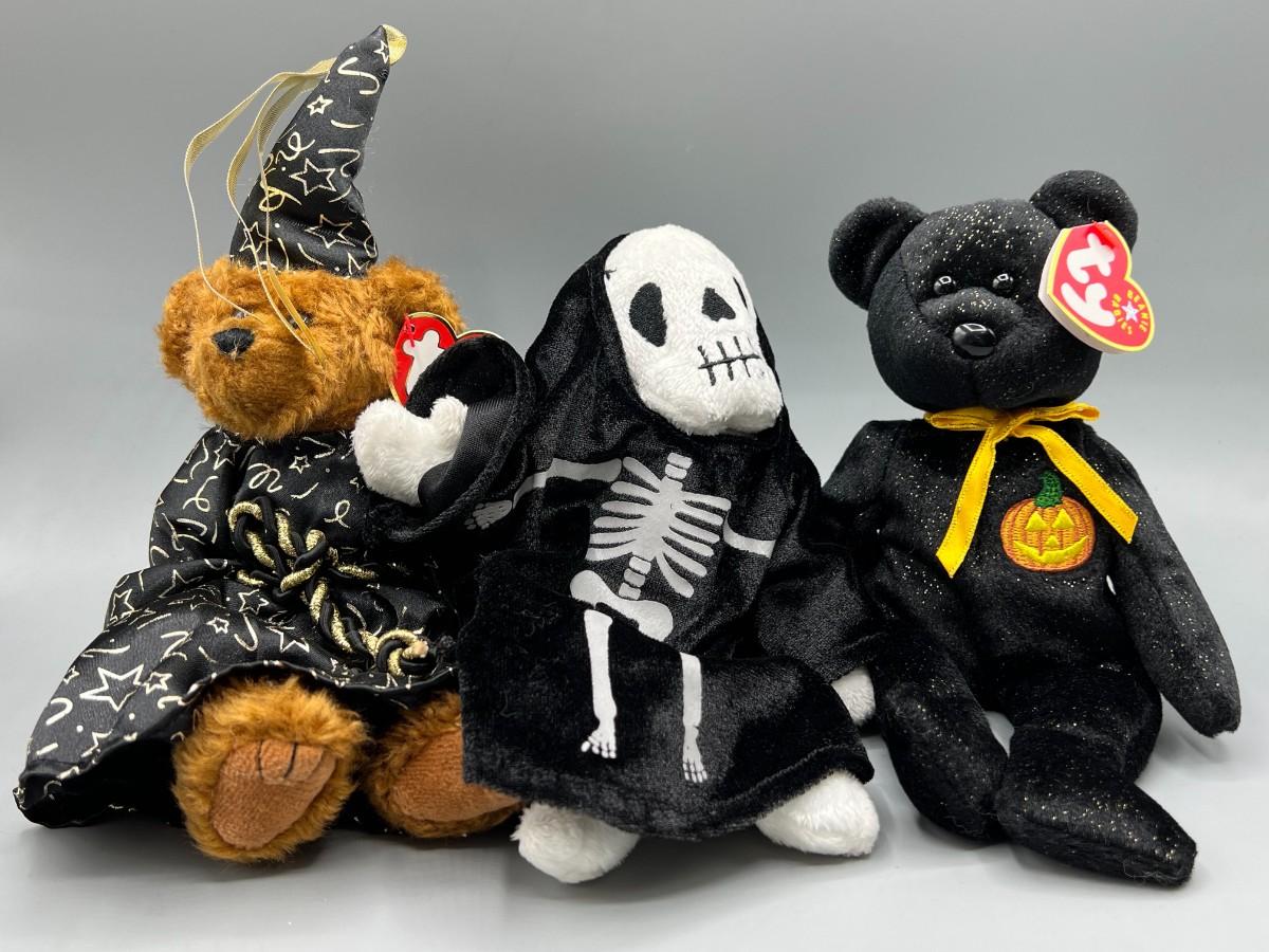 Lot of Spooky Halloween Beanie Babies Bears & Skeleton Plushies