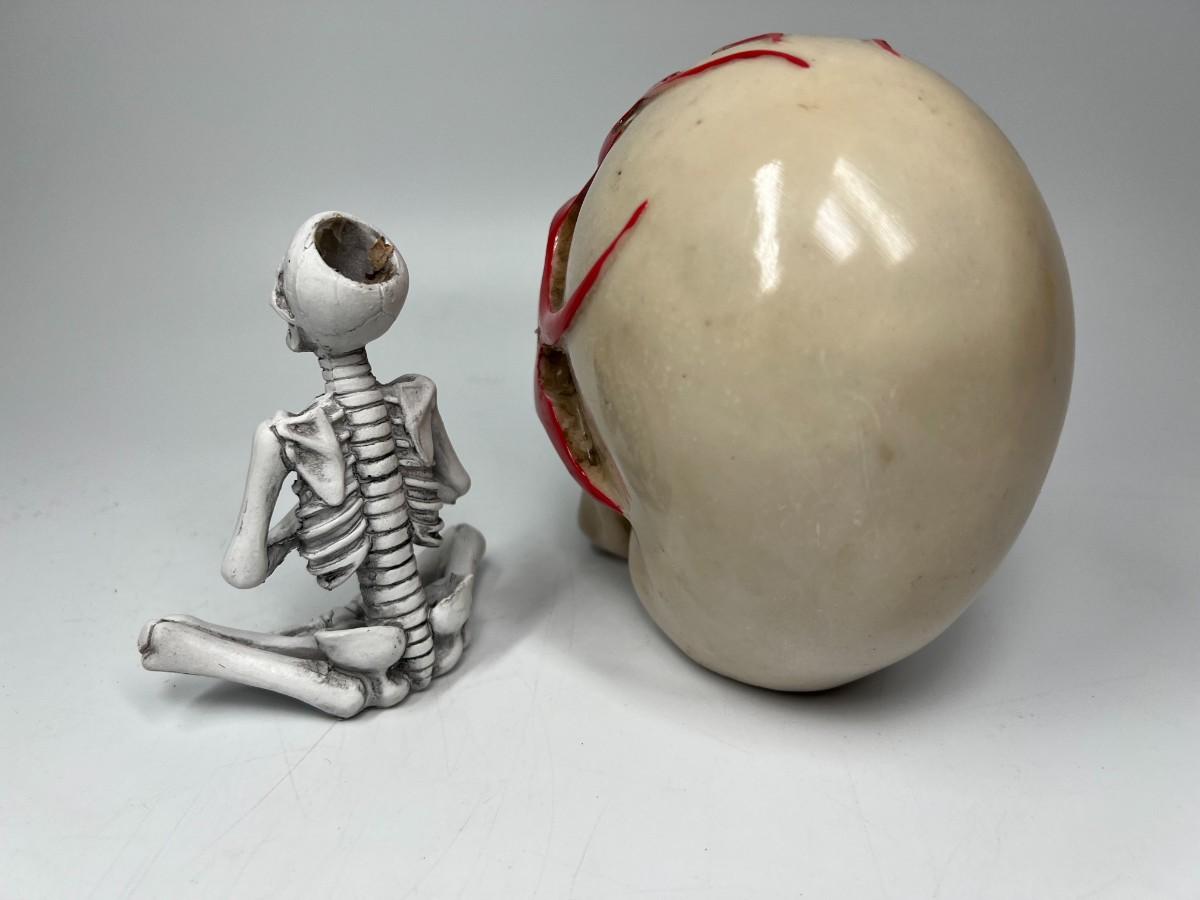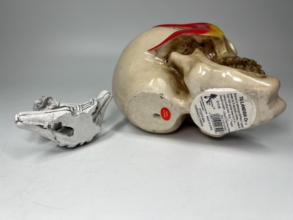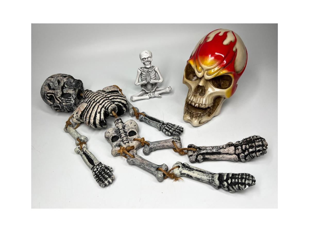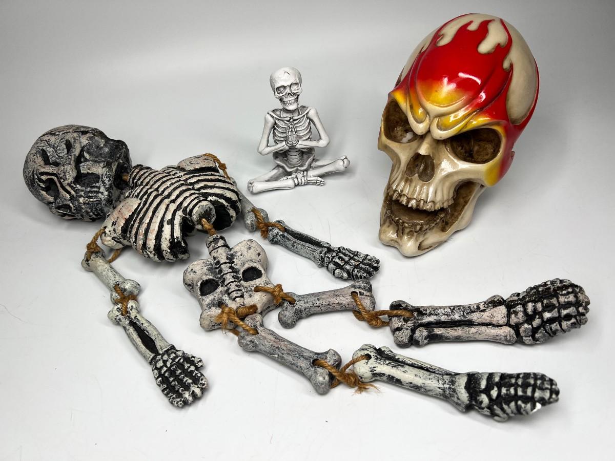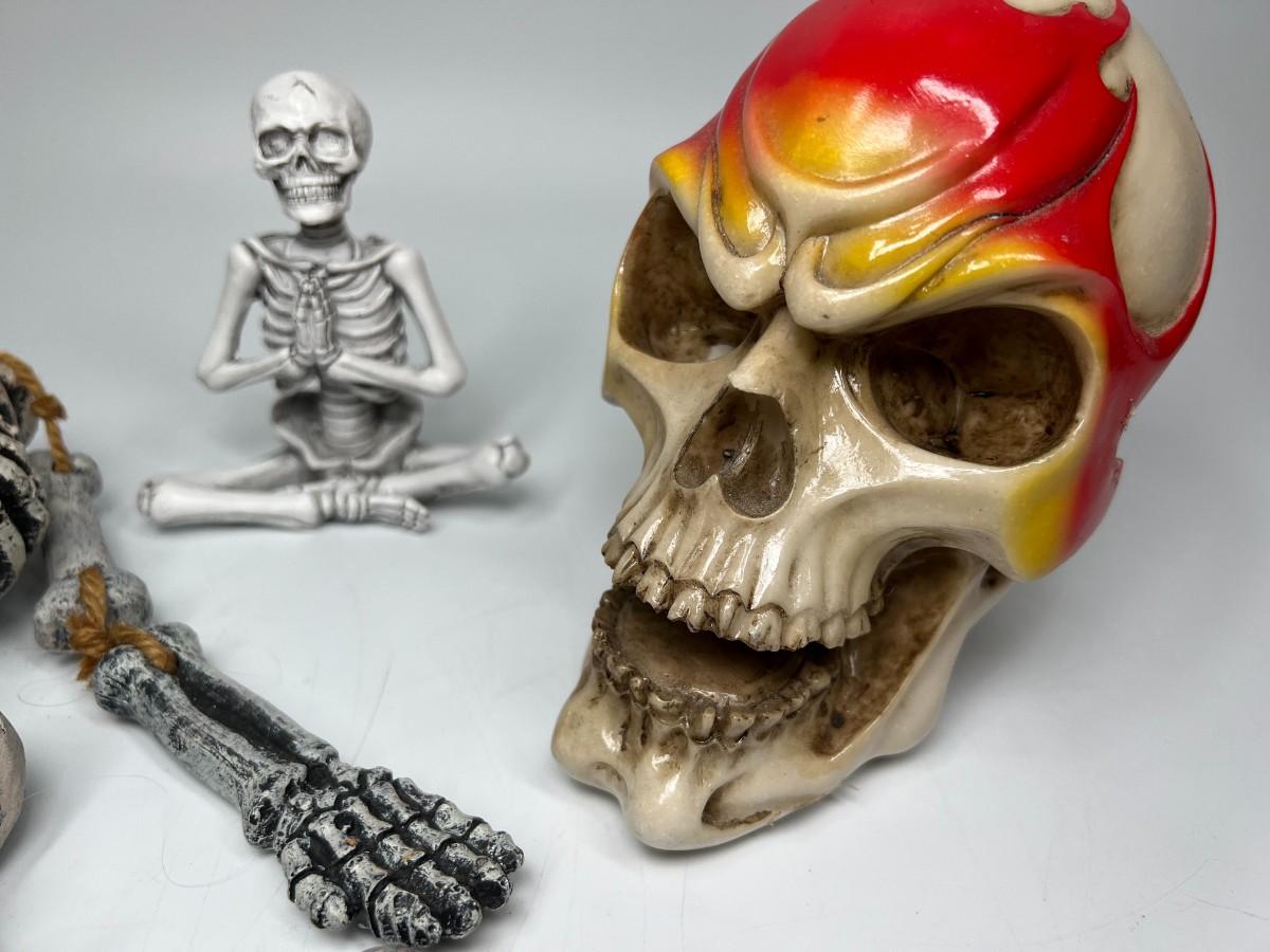 Lot of Spooky Skeleton Halloween Decor Figurines & Airplant Skull