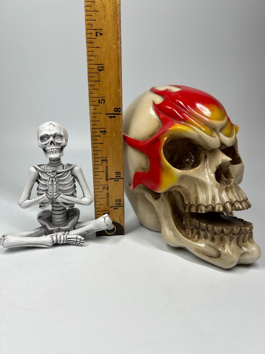 Lot of Spooky Skeleton Halloween Decor Figurines & Airplant Skull, there is no significant damage to any of the pieces in the lot and is in good displayable and useable condition. Check pictures for more details and for sizing.