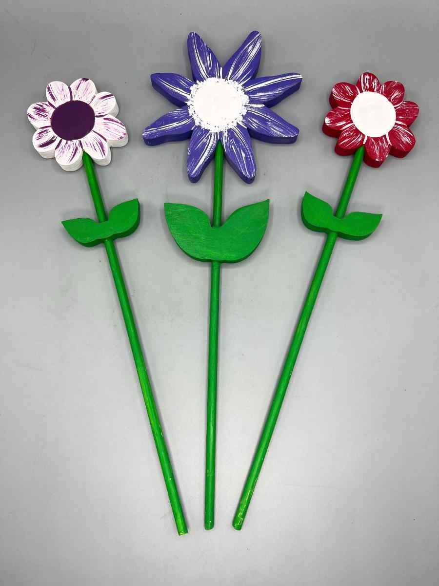 Lot of Springtime Hand Painted Wooden Flowers Garden Yard Art