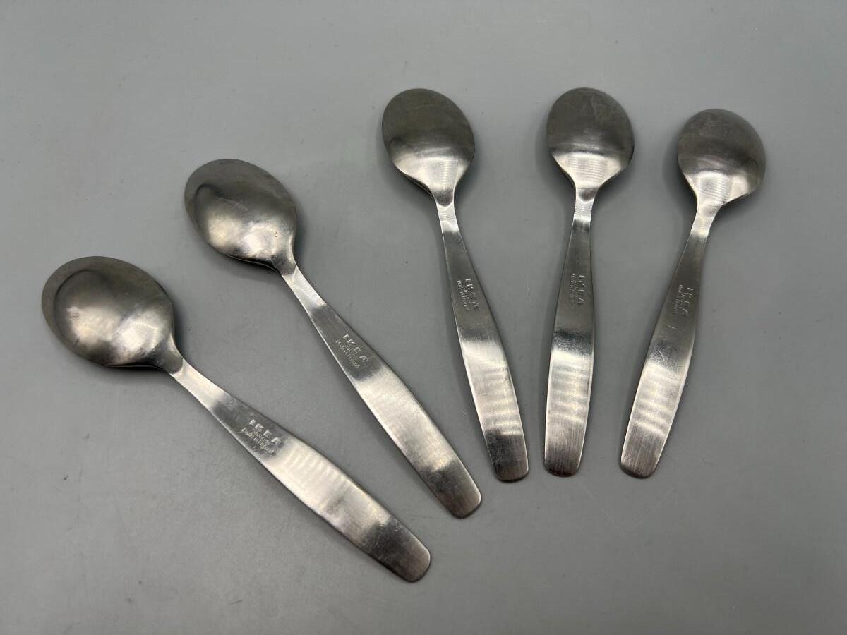 Lot of Stainless Steel Ikea Flatware Spoons, there is some light wear, but there is no signifncant damage to the spoons and is in good useable condition. Check pictures for more details and for sizing.