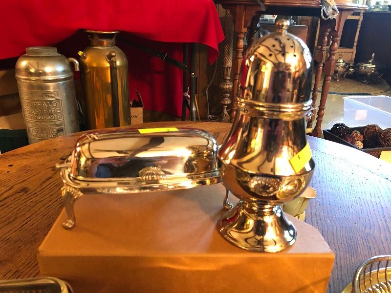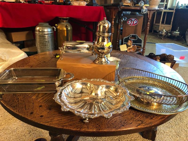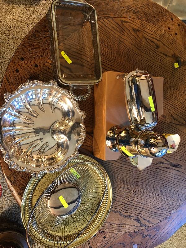 Lot of Silver-Plate Entertaining Items. One gold electra-plate. 6 pieces