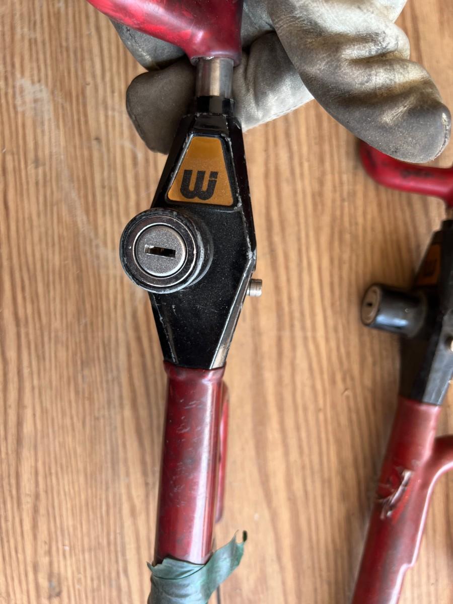 There is wear to the steering wheel locks, does not come with keys. Check pictures for more details and for sizing.
