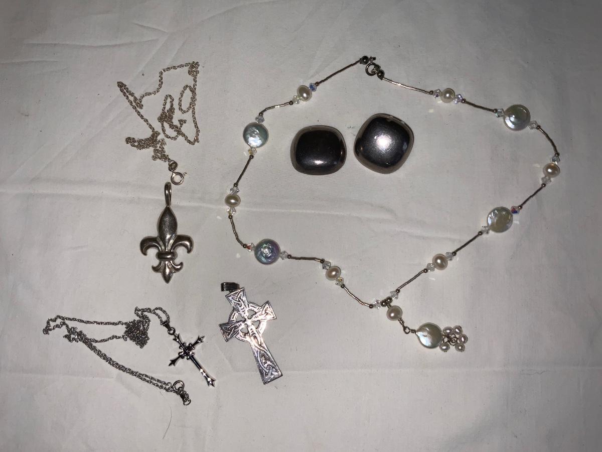 Lot of Sterling Silver Jewelry Pieces. Some are marked at Sterling, 925 or the mark is indistinguishable. Not verified or tested please see photos for condition.