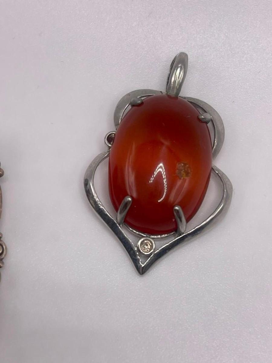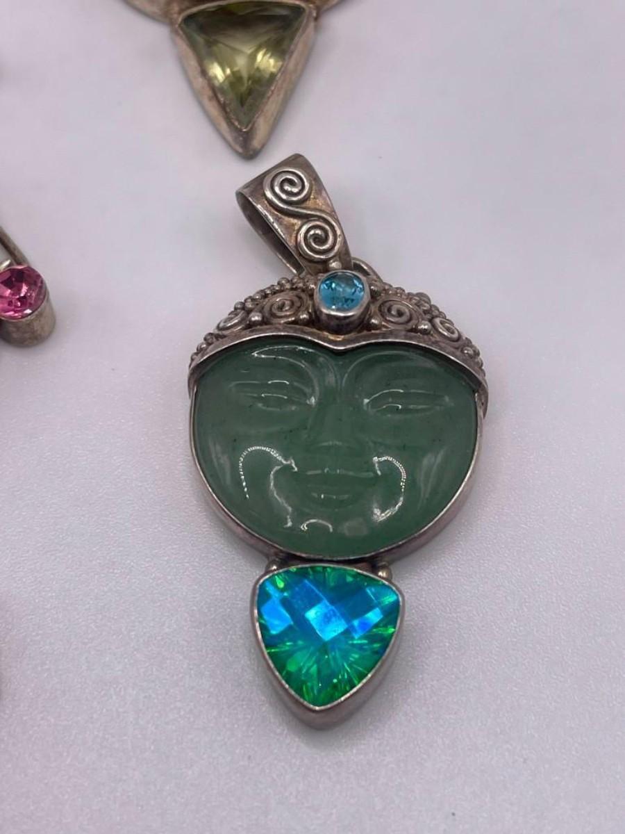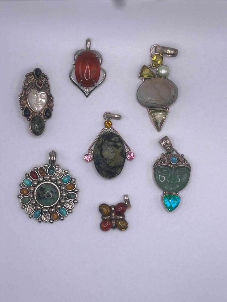 Lot of Sterling Silver with Stone & Costume Pendants. Most of the pendants are some sort of genuine, stimulated or modified stone set in silver. A couple may be pure costume.