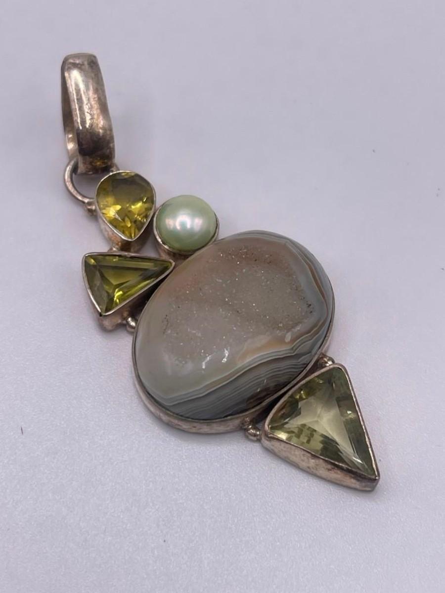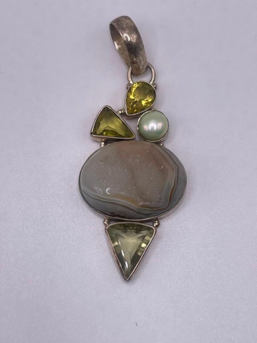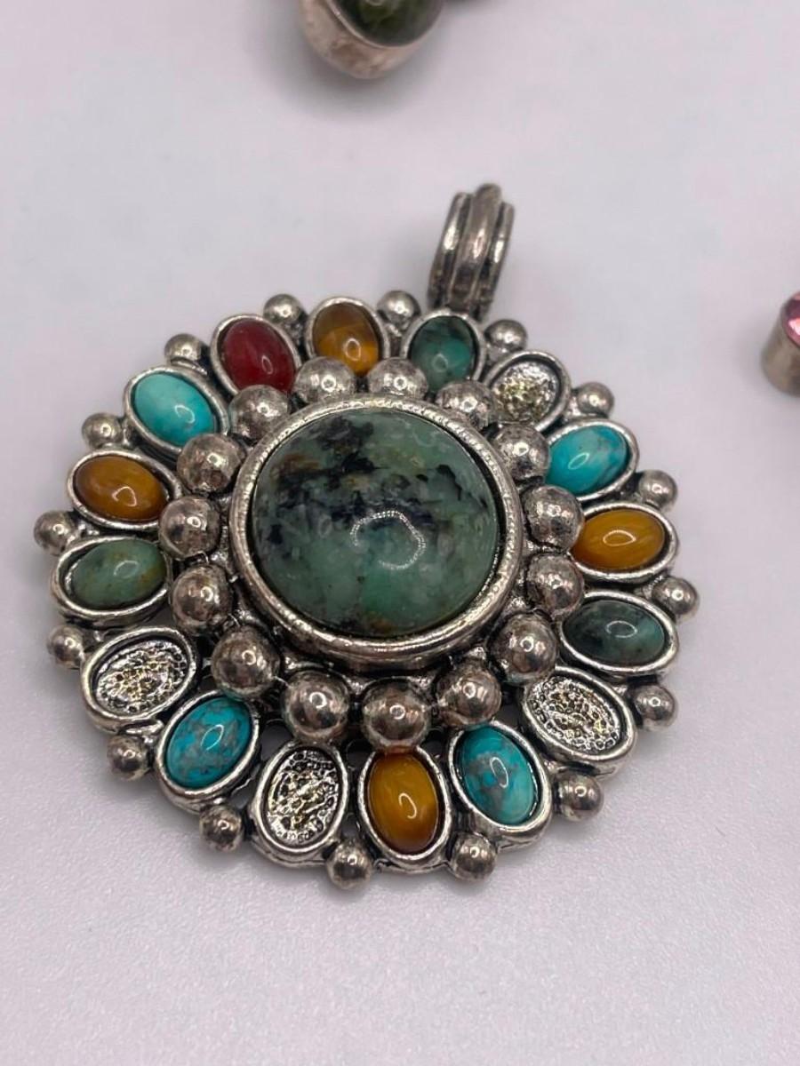 Lot of Sterling Silver with Stone & Costume Pendants. Most of the pendants are some sort of genuine, stimulated or modified stone set in silver. A couple may be pure costume.