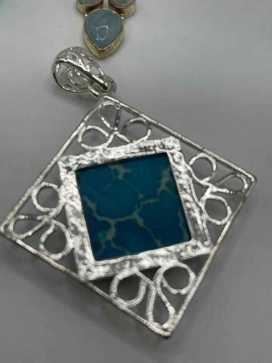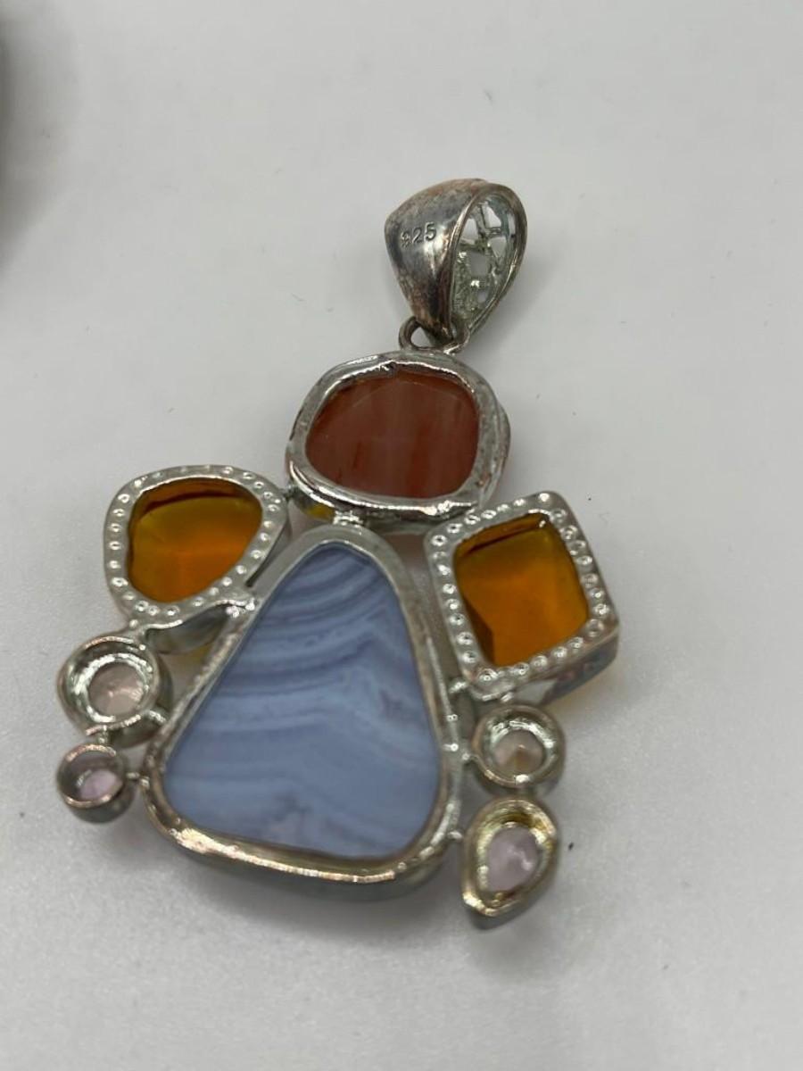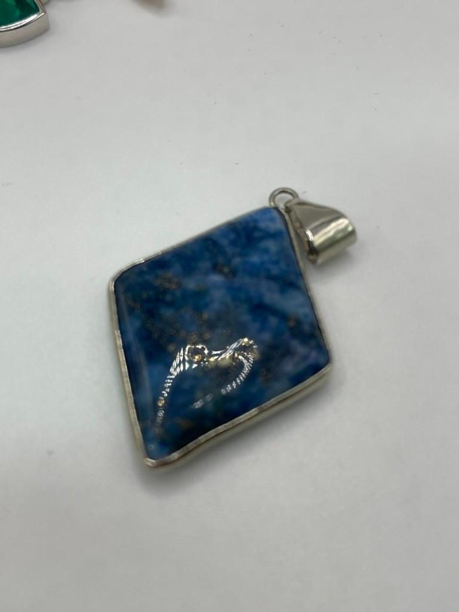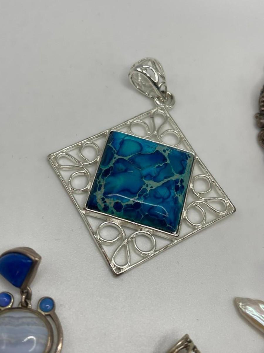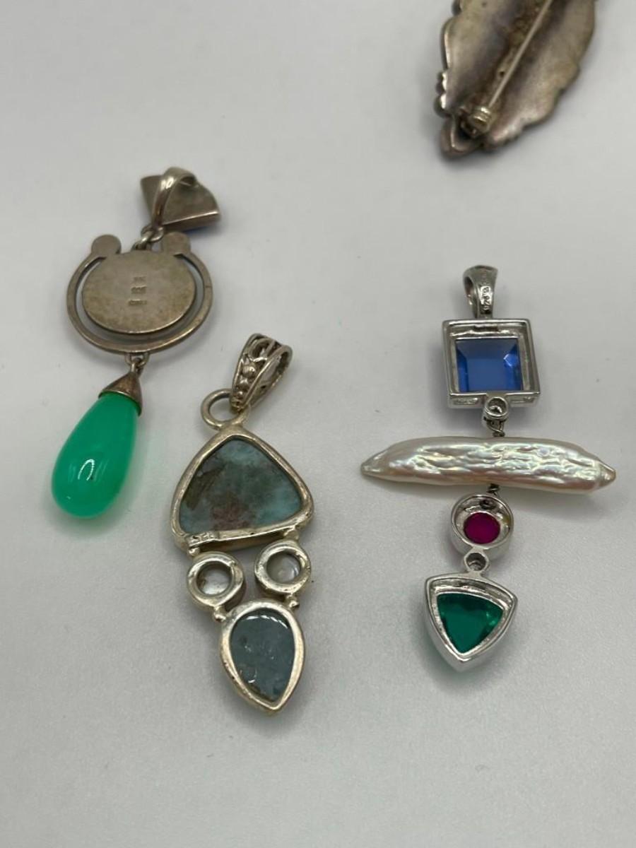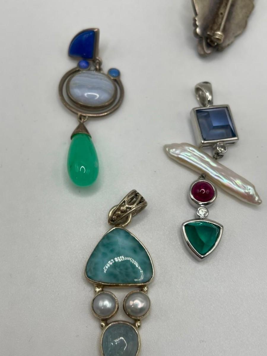 Lot of sterling silver pendants set with natural, simulated or manipulated stones along with a couple of pure costume jewelry pieces.  Please examine photos carefully.