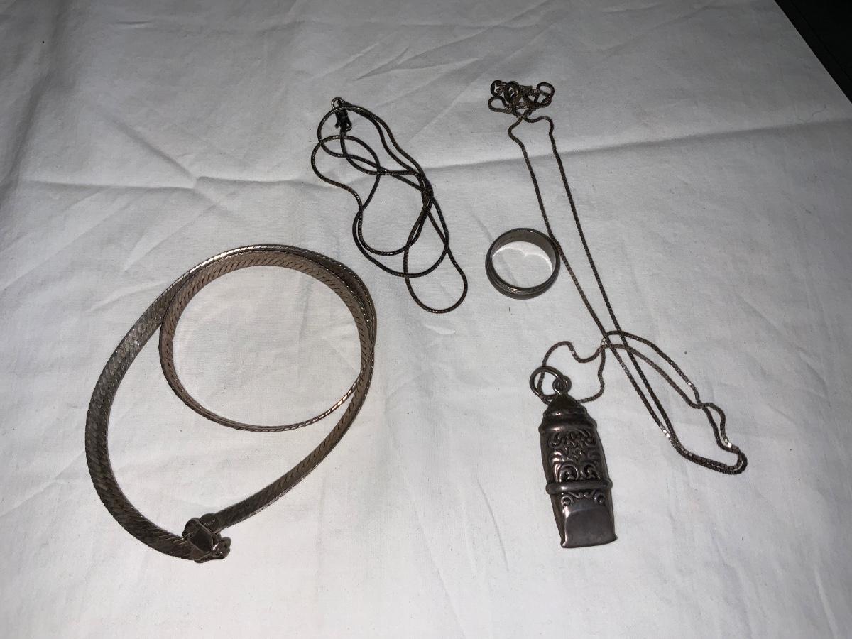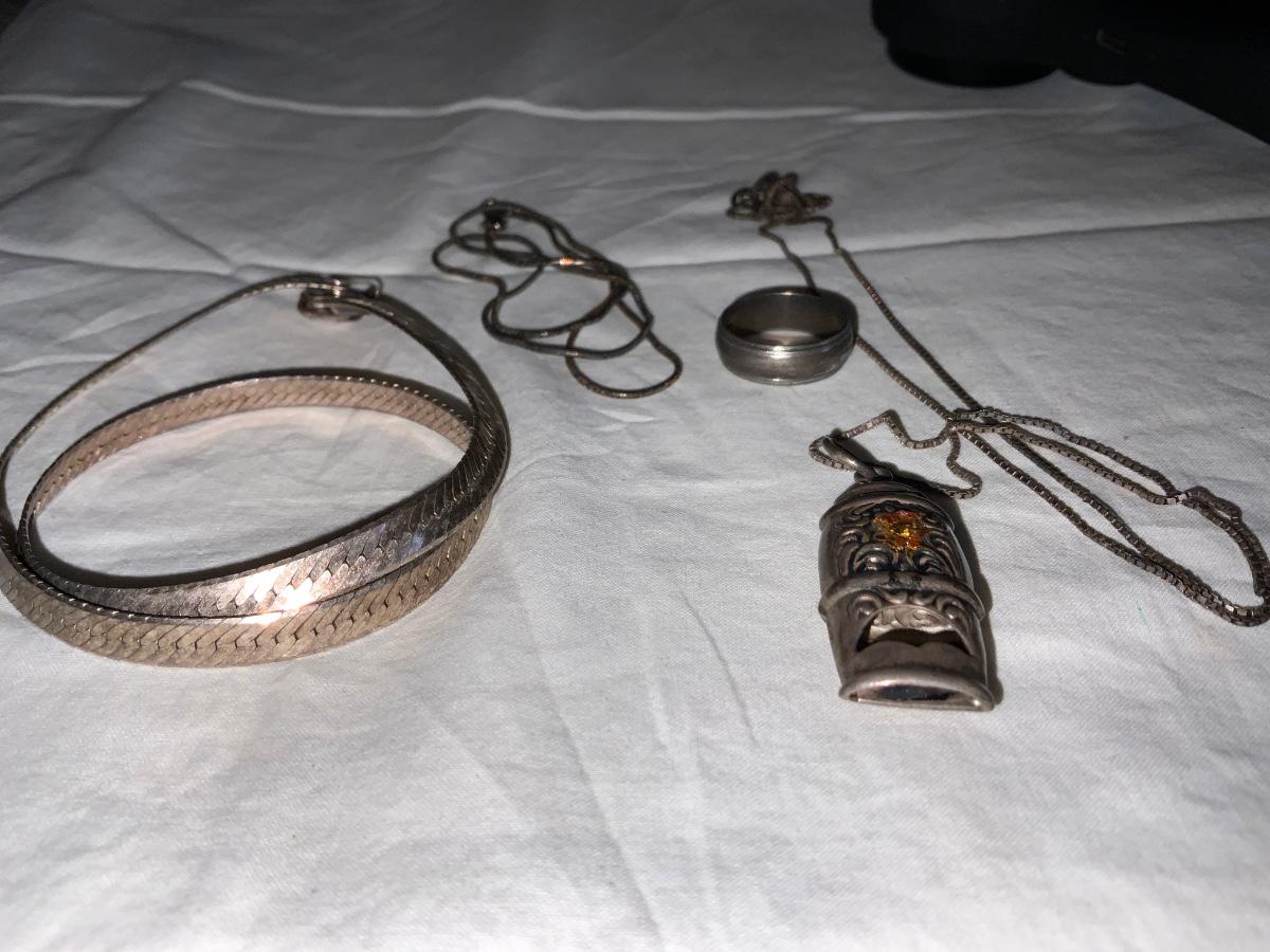Lot of Silver toned Jewelry items. Please see photos for condition . Ring is a size 7